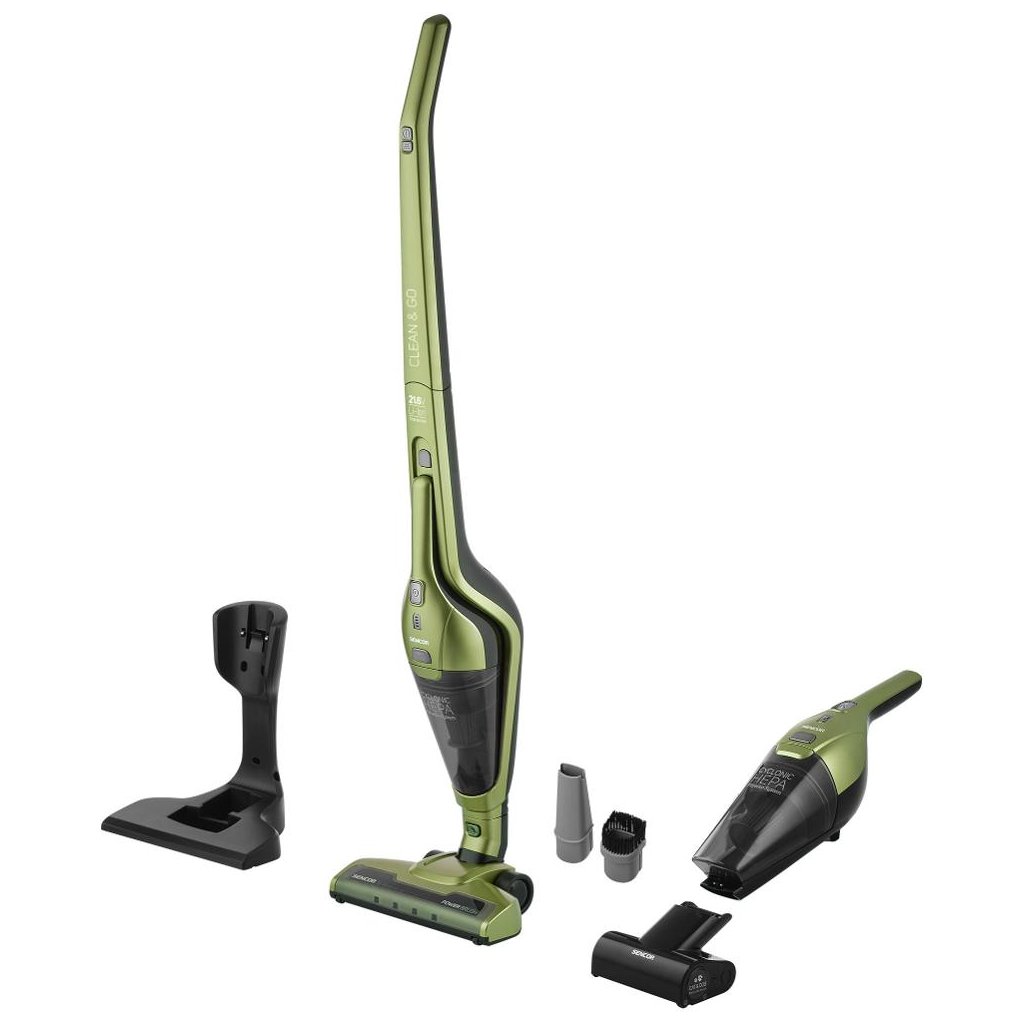 Tyčový vysavač Sencor SVC 0600GG 3 v 1 se samostatnou ruční jednotkou efektivně vysává podlahy i koberce. Odnímatelná ruční jednotka je dokonalým pomocníkem pro čištění prachu na nábytku nebo v interiéru auta. Díky motorizovanému kartáči Cat & Dog Mini si poradí se zvířecími chlupy, koberečky i úklidem čalounění. S nasazenou štěrbinovou hubicí vyčistíte také spáry. Za pomoci integrované 21,6V Li-Ion baterie s kapacitou 2 000 mAh dokáže vysavač pracovat až 45 min na jediné nabití. Navíc efektivně osvětluje prostor úklidu pomocí praktického LED světla, které je umístěno na hubici vysavače. Prach a nečistoty jsou odvedeny do vnitřní nádoby s kapacitou 0,5 l. K vysavači se dodává nabíjecí základna, kam můžete vysavač po použití pohodlně umístit a dobít baterii.