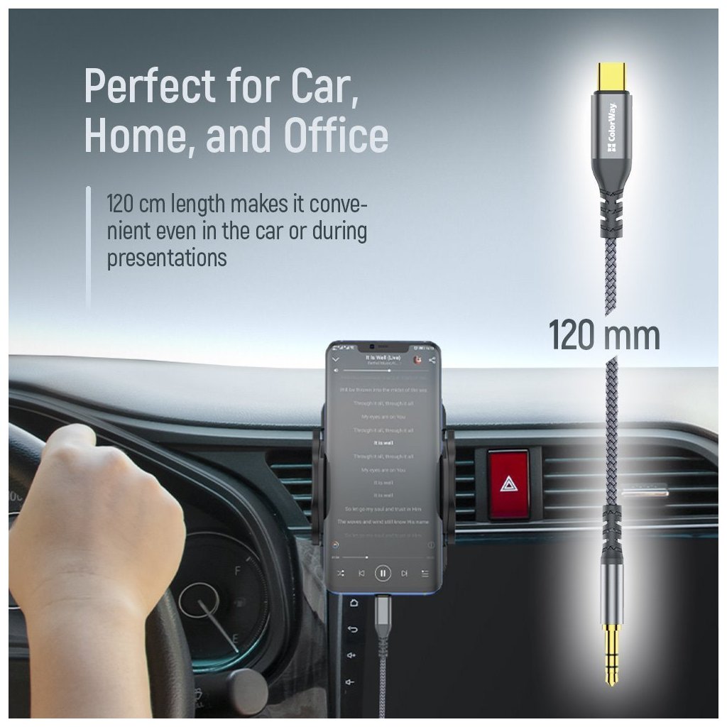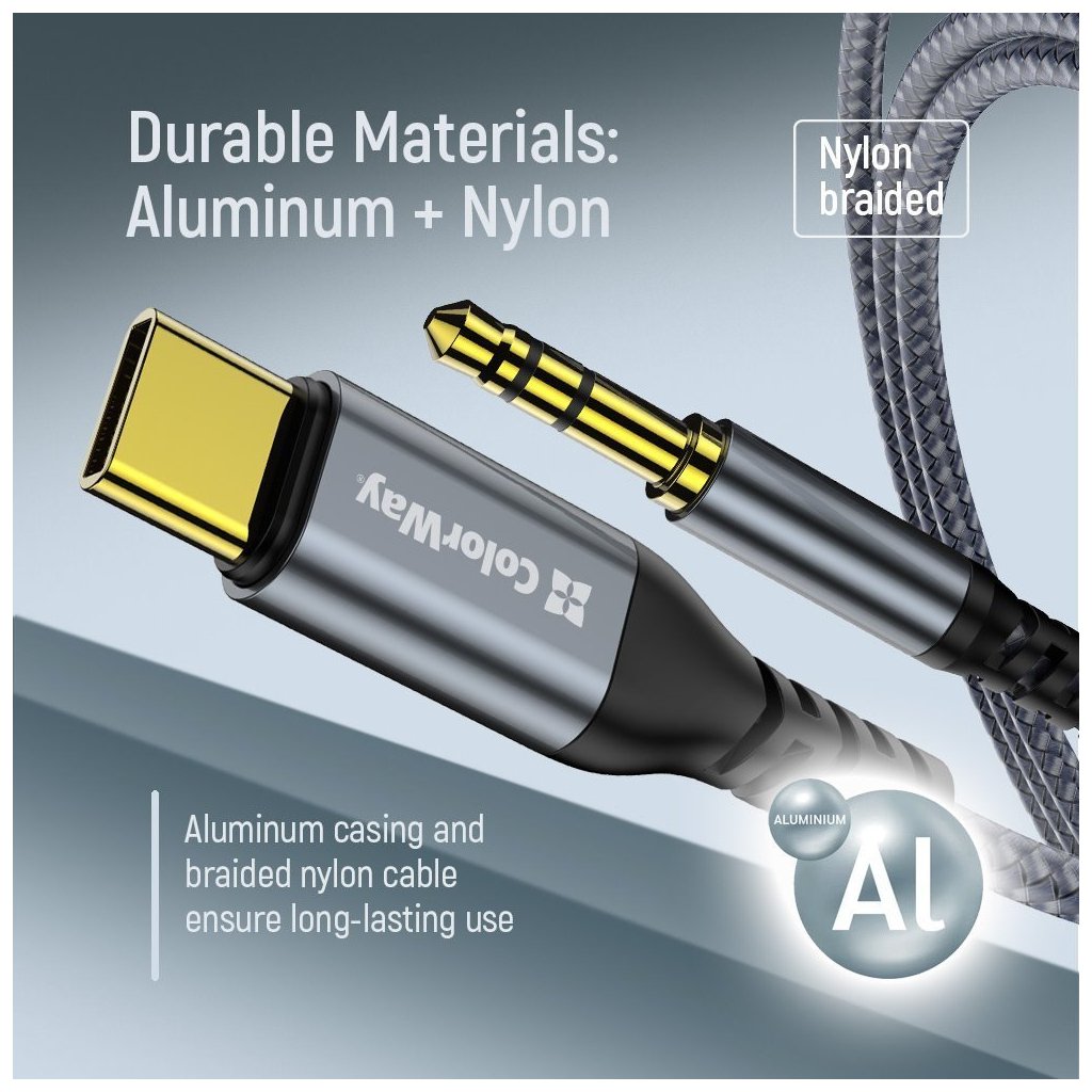 ColorWay USB-C na 3,5mm jack 1,2 mKvalitní USB-C adaptér pro připojení sluchátek a audio zařízení s 3,5 mm konektorem k moderním zařízením s USB-C portem.