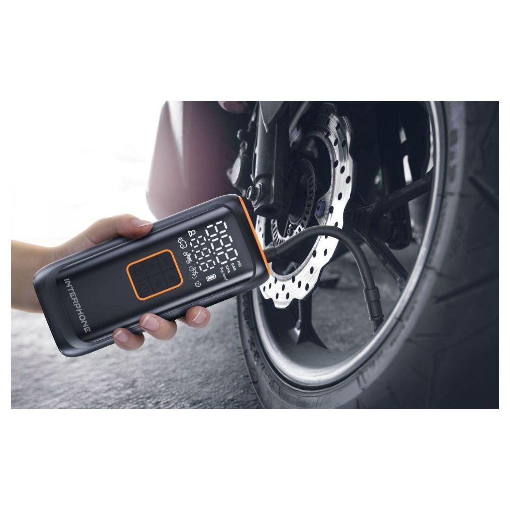 Silný a rychlý: Nafoukne až 4 motocyklové pneumatiky najednou na jedno nabití. Chytrý a praktický design: Je vybaven integrovanou hadicí, spolu s displejem pro sledování tlaku. Pokročilé bezpečnostní funkce automatického zastavení při dosažení požadovaného tlaku. Integrované LED světlo Baterie s dlouhou výdrží s funkcí powerbankySpecifikace: