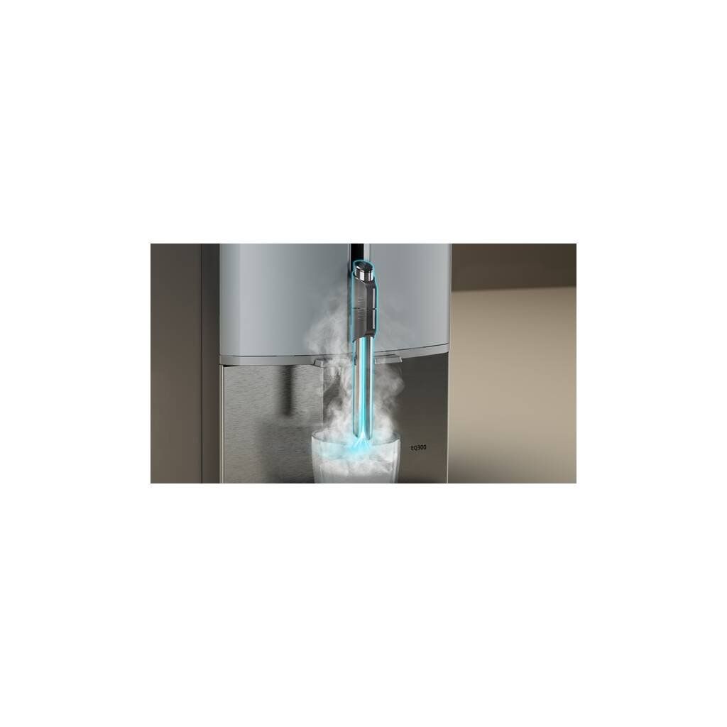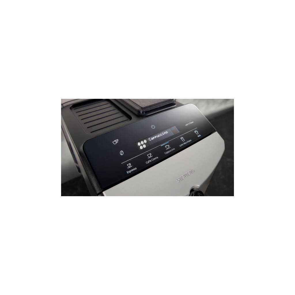 Plně automatický kávovar Espresso Siemens TF303E07 v moderním nerezovém designu vám připraví lahodnou kávu kdykoli na ni dostanete chuť. Tento model má příkon až 1 300 W a tlak 15 bar. Kávovar má jednoduchý a přehledný ovládací displej se symboly a obrázky. Zobrazuje všechny funkce a lze jej ovládat pouhým stisknutím tlačítka. Napěňovací systém milkPerfect našlehá pevnou pěnu, a díky nastavitelné výpusti můžete připravit latté do sklenic vysokých až 15 cm. S vysoce kvalitním keramickým mlýnkem bude vaše káva rovnoměrně rozemletá a její aroma bude ještě intenzivnější.