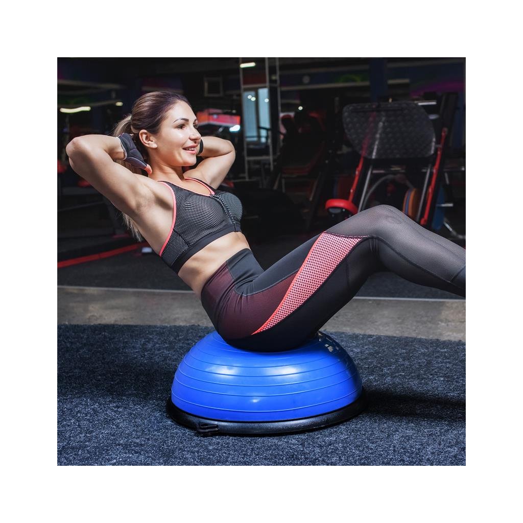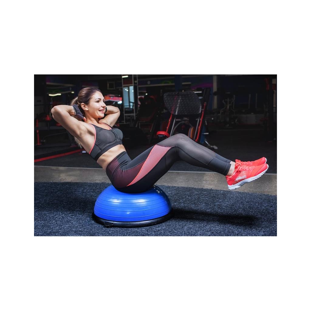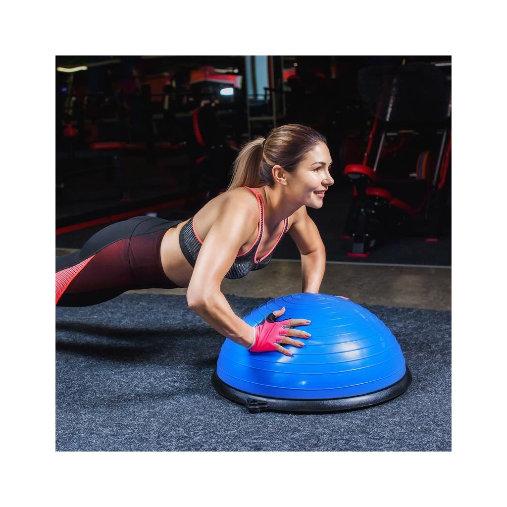 S průměrem 58 cm a výškou 23 cm poskytuje poloviční míč pohodlí a jeho kompaktní rozměry umožňují snadné skladování. Důležité je, že protiskluzové nožičky zaručují stabilitu a bezpečnost při cvičení na jakémkoli povrchu.
