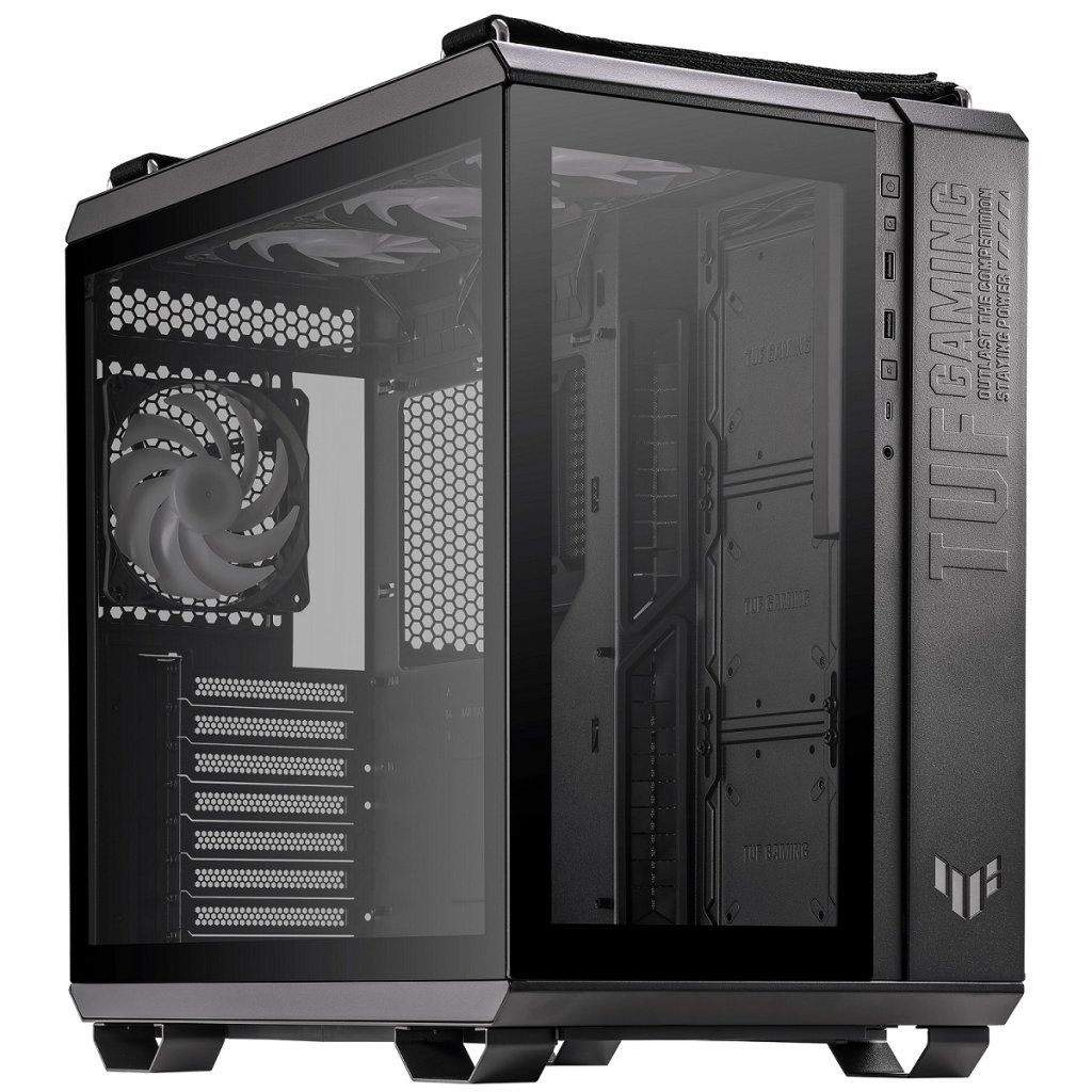 ASUS TUF Gaming GT502 PLUS je prémiová počítačová skříň určená pro náročné hráče a nadšence. Díky přední a boční straně z tvrzeného skla nabízí tento mid-tower elegantní a moderní vzhled s možností ukázat vaše vnitřní komponenty. Vnitřní prostor je prakticky rozdělen do dvou oddělených komor, což umožňuje efektivnější proudění vzduchu a lepší organizaci kabeláže.