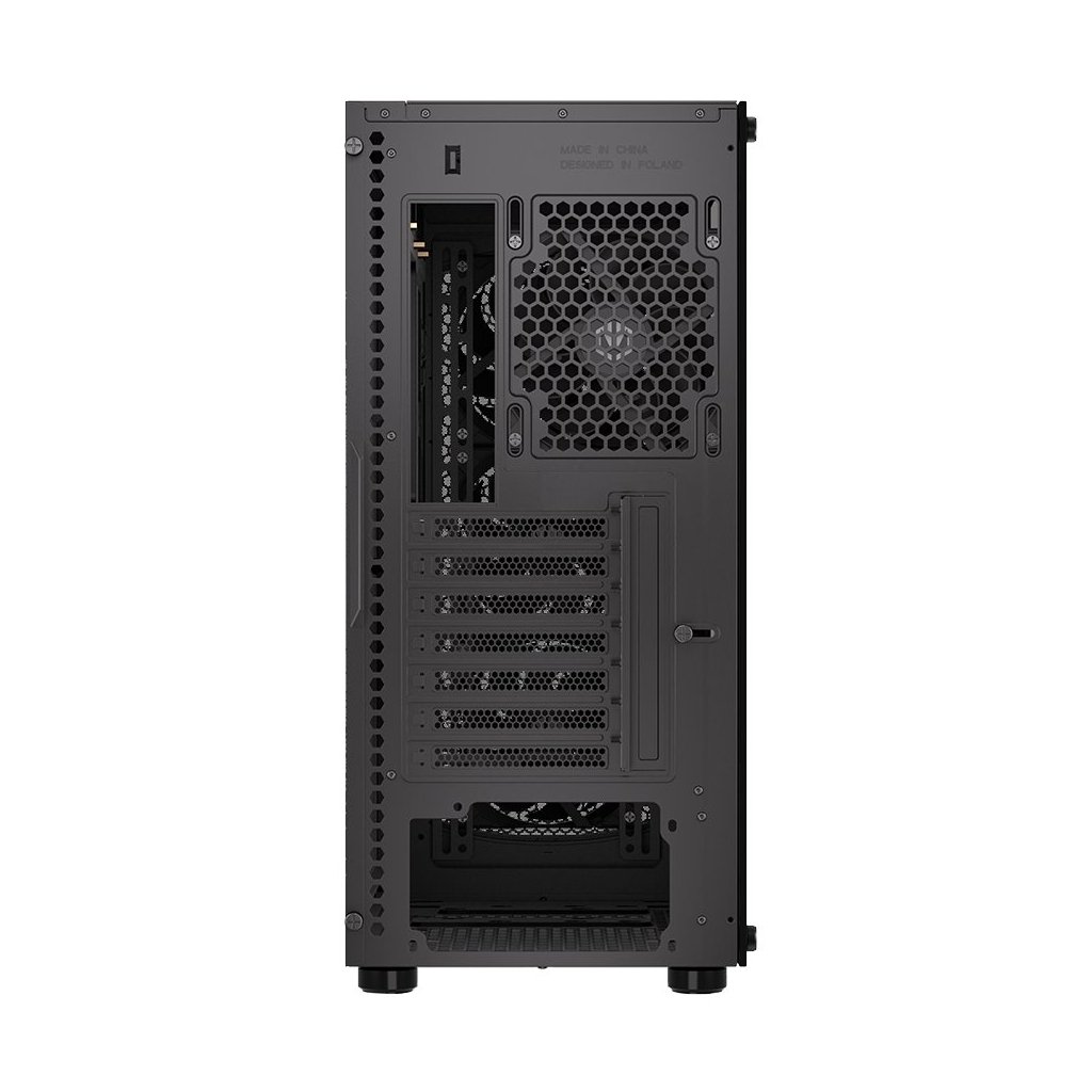 Skříň je již výrobcem osazena 4x 120 mm ventilátorem Stratus 120 PWM. 3 jsou umístěny na předních pozicích pro nasávání vzduchu a 1 na zadní pozici pro jeho odvětrávání. Pokud by vám ovšem takové množství chlazení nestačilo, je možné osadit také 2 pozice na horní straně a 2 pozice na krytu zdroje, pro až 8 ventilátorů celkem. Přední pozice navíc umožňuje instalaci až 280/360 mm radiátorů. Horní pak 240/280 mm radiátorů.