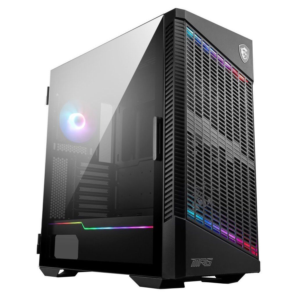 Herní počítačová skříň MPG VELOX 100P AIRFLOW na první pohled zaujme svým unikátním předním panelem, který kombinuje vysoce prodyšný prvek a ARGB LED prvek, který se nachází také na boku tunelu pro instalaci zdroje. Součástí je také předinstalovaný 1x 120 mm ARGB a 3x 120 mm ventilátor. Jeho osvětlení lze ovládat buď skrze kompatibilní základní desku nebo pomocí tlačítka umístěného na horním panelu.