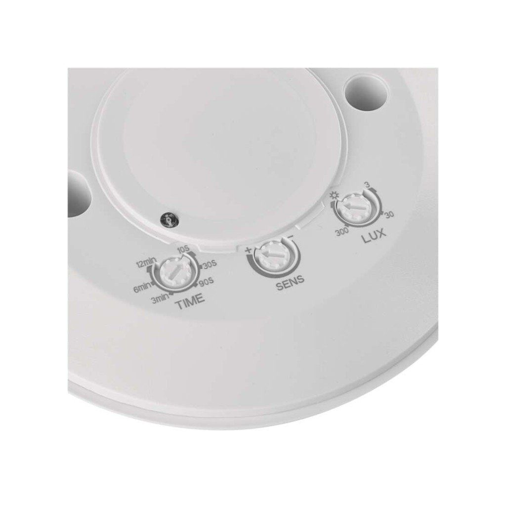 Čidlo nabízí detekční dosah až 8 metrů a pokrytí 360°, díky čemuž je ideální pro chodby, sklady, garáže nebo kancelářské prostory. Nastavitelná doba sepnutí od 10 sekund do 12 minut umožňuje přizpůsobit funkci konkrétním potřebám uživatele. Krytí IP20 předurčuje čidlo výhradně pro vnitřní použití v suchých prostorách.