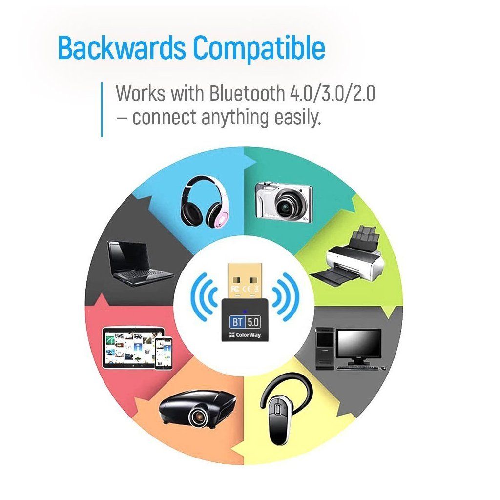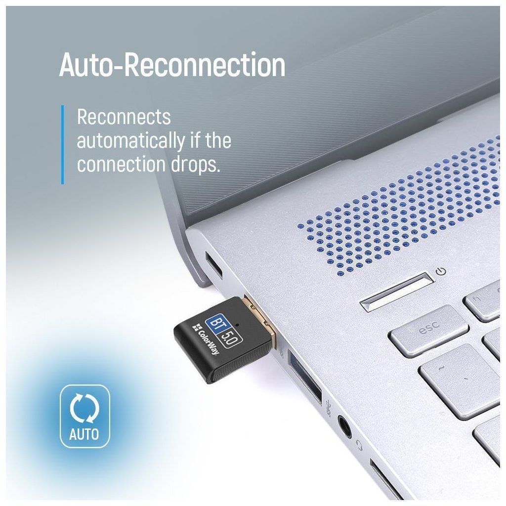 ColorWay Bluetooth BT 5.0 USB-A – rychlá a snadná konektivita pro vaše PCUSB adaptér ColorWay Bluetooth BT 5.0, se kterým obohatíte váš PC systém o bezdrátovou konektivitu Bluetooth.