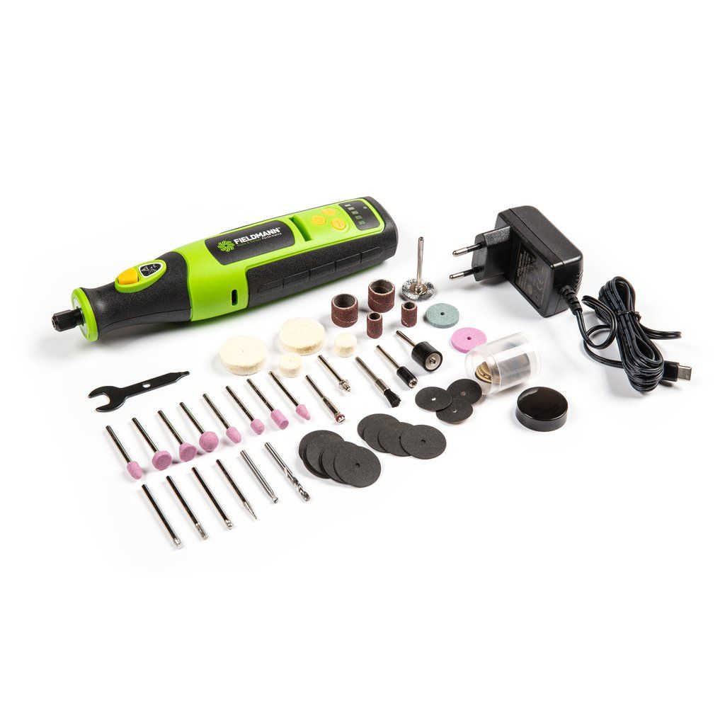 Skvěle propracovaná modelářská bruska ověřené značky FIELDMANN je všestranný univerzální nástroj pro domácí kutily, drobné řemeslníky i hobby nadšence. Jedná se o mini přímou brusku s regulací otáček. O dostatečný výkon se postará Li-Ion 7,2 V / 1,3 Ah akumulátor. Otáčky je možné regulovat v rozmezí 5 000 – 25 000 otáček za minutu. Je vhodná pro opracování jak měkkých, tak i tvrdých materiálů. Skvěle se drží a snadno i rychle v ní vyměníte pracovní nástavce. Oproti klasickým bruskám odpadá nutnost nošení kabelu a je možnost pracovat i v prostoru, kde není přístup k el. síti. Samozřejmostí je 70 kusů příslušenství zdarma. To vše doplněno o ergonomické madlo s měkčenou rukojetí. Klíčové vlasnosti: Aku modelářská bruska 7,2 V / 1 300 mAh Možnost regulace otáček motoru (5 000 – 25 000 ot/min) Ergonomické madlo s měkčenou rukojetí Včetně 70 ks příslušenství v balení Všestranné použití: vrtání, broušení, frézování, leštění… Technické parametry: Li-Ion 7,2V / 1300 mAh 5 rychlostí: 5000-25000 ot./min. LED pracovní světlo Měkčená rukojet Doba nabíjení: 60 min Součást balení: 70 ks příslušenstvíDoplňkové parametry