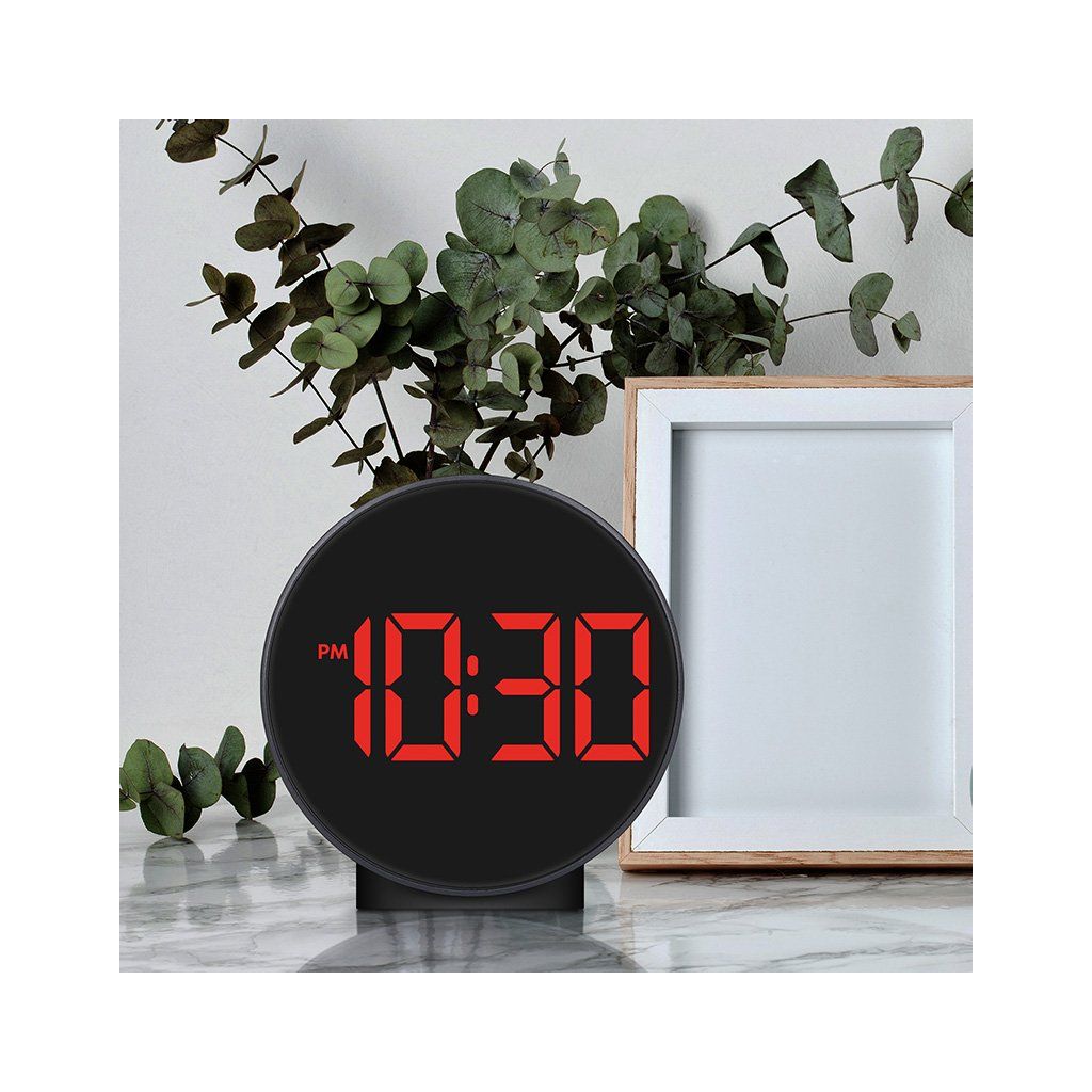 Tento moderní budík zobrazuje čas a teplotu na LED displeji s možností přepínání mezi jednotkami °C/°F. Disponuje třemi úrovněmi jasu a nočním režimem, který automaticky snižuje jas během nastaveného časového intervalu. Jednoduché nastavení budíku s možností jeho vypnutí zajistí pohodlné používání. Napájení 3× AAA bateriemi nebo přes DC 5V.