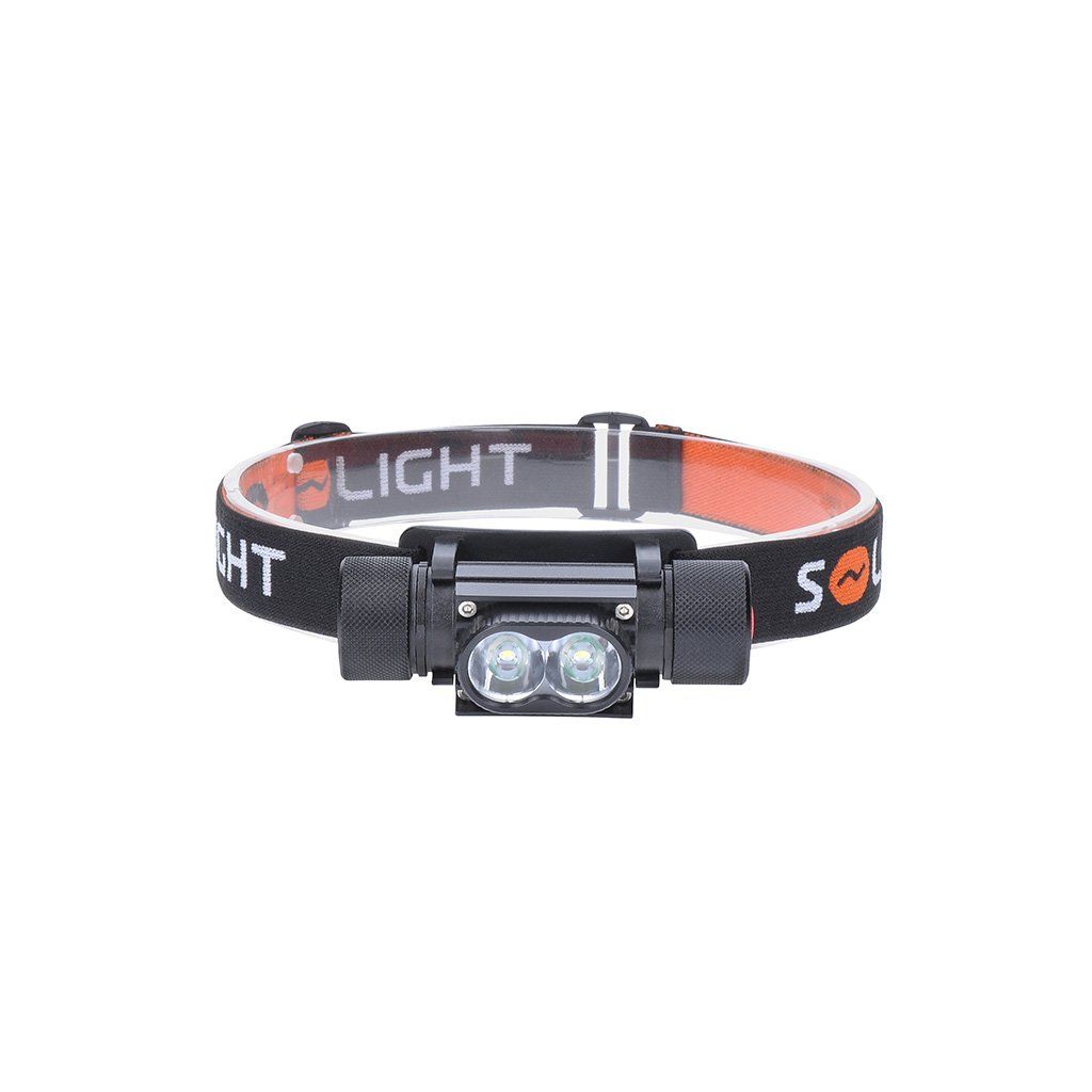 - nabíjecí LED čelová svítilna s vysokým světelným tokem a dvěmi výkonnými XPG LED diodami