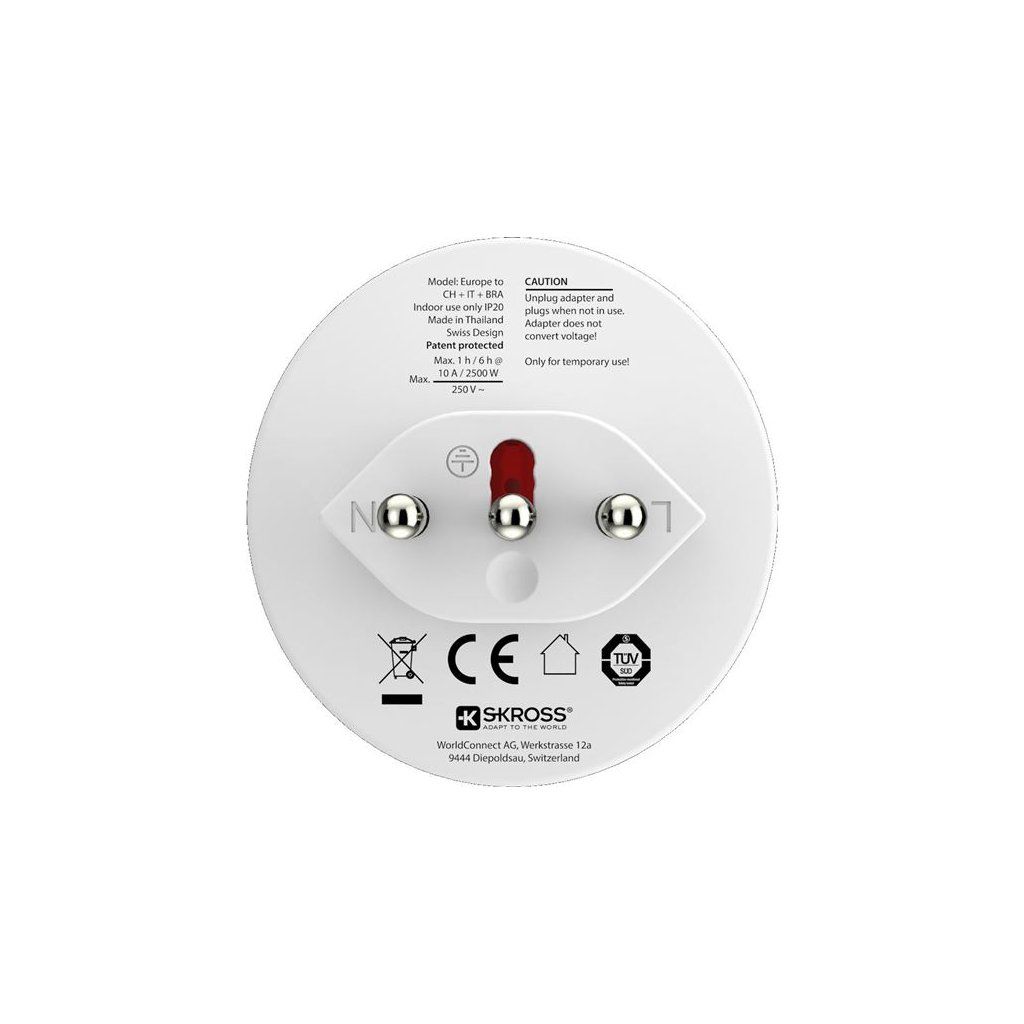 SKROSS PA71 cestovní adaptér pro použití v Brazílii, Itálii a Švýcarsku
