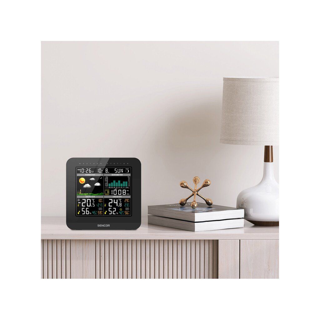 Meteorologická stanice SENCOR SWS 5800 přichází s velkým barevným LCD displejem, který má 3 úrovně jasu (vysoká, nízká, vypnuto) a nabízí víc než jen předpověď počasí. Na hlavním panelu meteostanice získáte informaci o čase (12/24hodinový formát a rádiem řízené hodiny DCF 77), aktuálním dni v týdnu, datu i měsíční fázi. Díky těmto funkcím dostává meteorologická stanice SENCOR ještě větší rozměr. Budík se svým opakovaným buzením a možnost propojit zařízení s dalšími 2 senzory (nejsou součástí balení) je jen třešničkou na dortu. Připojením dalších senzorů a 100m dosahem čidel od hlavní základny získáte dokonalý přehled o počasí.