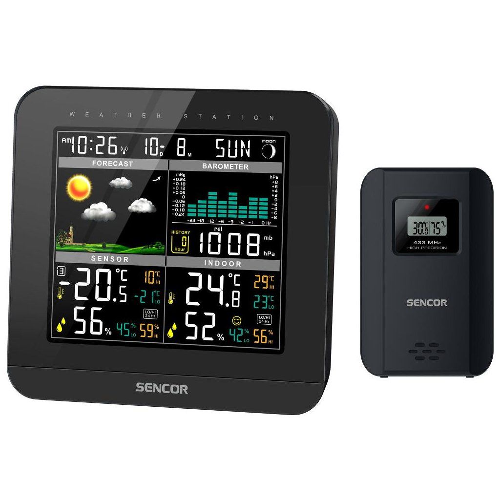 Přinášíme vám předpověď počasí na 12 až 24 hodin dopředu, která je postavená na změnách tlaku a teploty vzduchu. Díky ní získáte jasnou představu o tom, jaké počasí vás aktuálně venku čeká. Stylová meteorologická stanice s bezdrátovým snímačem. SENCOR SWS 5800 zapadne do každé domácnosti. S barevnými ikonami přestavující počasí venku (slunečno, mírně oblačno, oblačno, déšť, sníh) na první pohled hned uvidíte, co vás za zavřenými okny čeká.