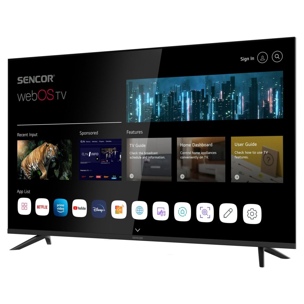 Sencor SLE 43FS804B je moderní SMART televize s úhlopříčkou 109 cm (43"), která nabízí kvalitní obraz ve Full HD rozlišení a široké možnosti připojení. Díky systému webOS SMART TV poskytuje přehledné a intuitivní prostředí pro sledování oblíbených filmů, seriálů a online obsahu. Televize je vybavena funkcemi AI ThinQ s hlasovým ovládáním, podporou Wi-Fi a Bluetooth pro snadné propojení s dalšími zařízeními.