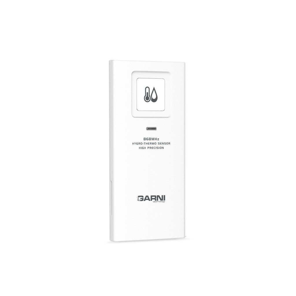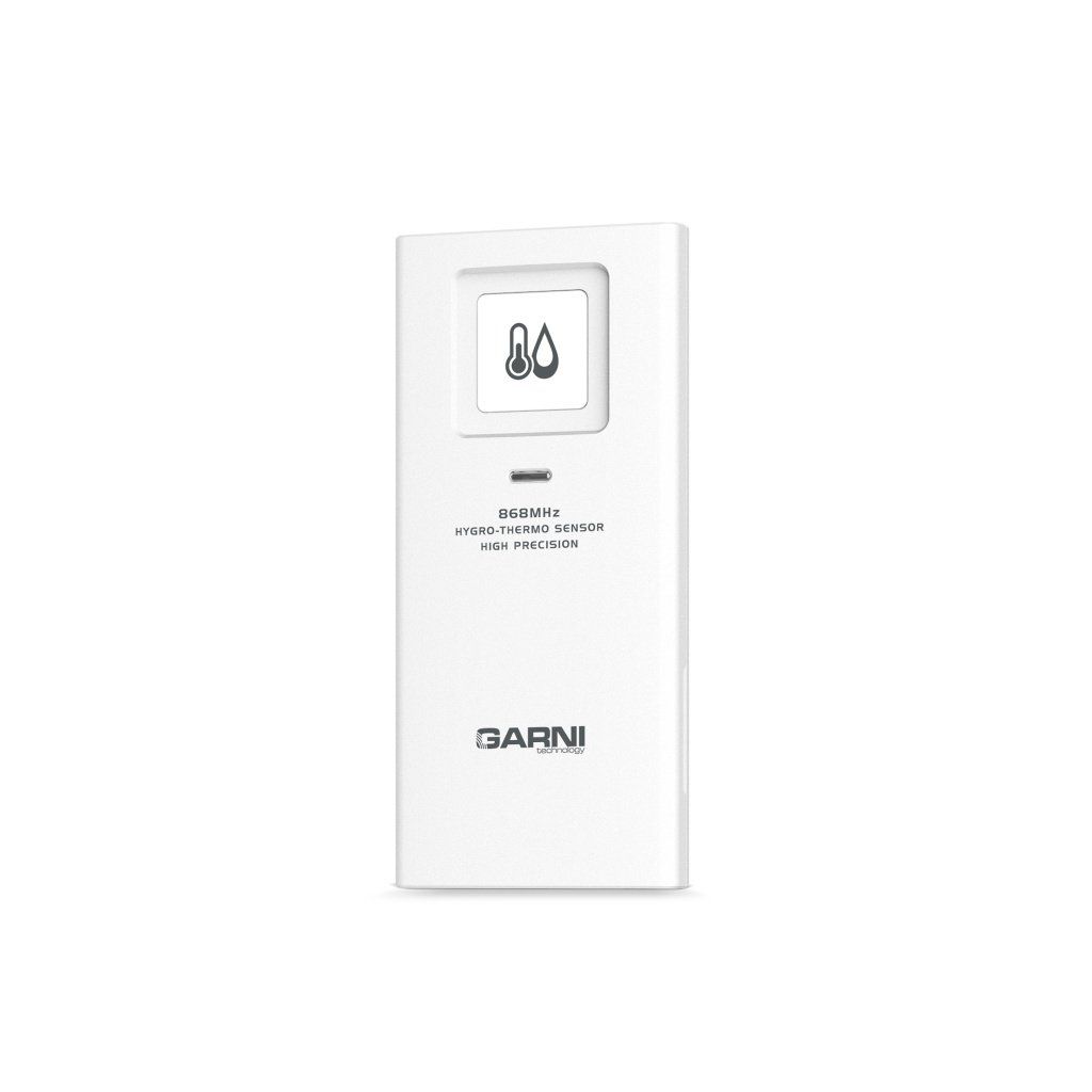 Sedmikanálové bezdrátové čidlo GARNI 055H 2GEN pro měření teploty a relativní vlhkosti, určeno pro Wi-Fi meteorologickou stanici GARNI 3015 Arcus, GARNI 3015 Arcus 2GEN, GARNI 2055 Arcus, GARNI 2055 Arcus 2GEN, GARNI 2040 Arcus, GARNI 2040 Arcus 2GEN, GARNI 1085 Arcus, GARNI 1025 Arcus, GARNI 1025 Arcus 2GEN, GARNI 975, GARNI 935PC, GARNI 925T, GARNI 2060 Arcus, GARNI 3075 Arcus, hobby meteostanici GARNI 750, chytrý digitální teploměr s vlhkoměrem GARNI 419T, WiFi meteo bránu GARNI GTway Plus