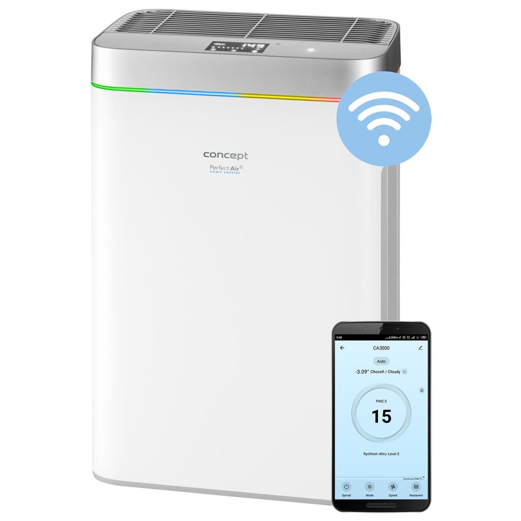 Čističku můžete ovládat odkudkoliv pomocí mobilní aplikace Concept Home, která je zdarma dostupná pro iOS i Android. Na dálku ji spustíte nebo vypnete, upravíte rychlost čištění, zjistíte stav filtrů nebo třeba zkontrolujete aktuální stav ovzduší v místnosti, kde se právě nachází. A pokud nejste fanoušci aplikací, můžete ji ovládat přes dálkový ovladač nebo pomocí tlačítek přímo na displeji.