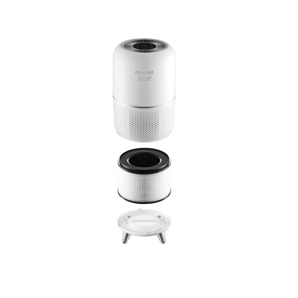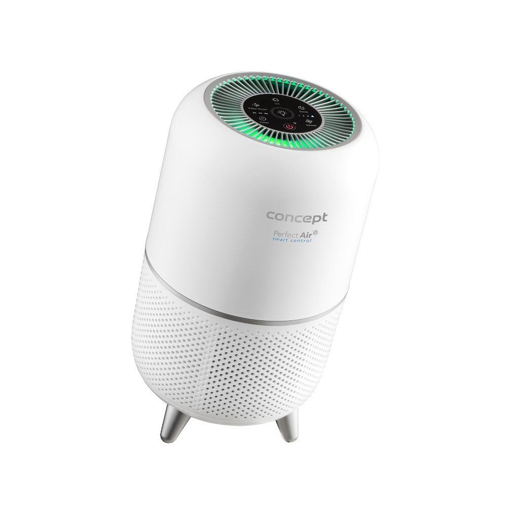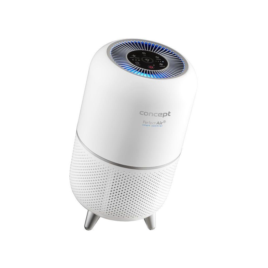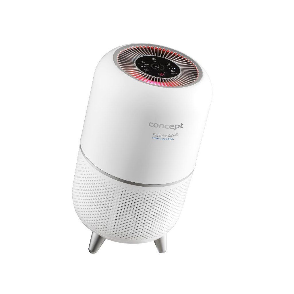 Dopřejte svému zdraví spolehlivou čističku vzduchu Concept Perfect Air Smart CA1020. Dosahuje vzduchového výkonu 150 m3 / hod. a je ideální pro místnost s velikostí do 20 m2. Čistička má atraktivní design a dokonale doplní váš domov i kancelář. Disponuje 3násobnou filtrací včetně ultra fialového záření. Výkon je možné nastavit na 4 rychlosti a k dispozici je automatický režim a ještě tišší noční režim. Přístroj je snadno přenositelný a velmi tichý s hlučností 49 dB. Účinně zachytí částice, pyl, alergeny, pachy, plyny a plísně. Senzor kvality ovzduší a barevné LED podsvícení vám usnadní nastavit vhodný režim. S mobilní aplikací můžete přístroj ovládat dálkově. Časovač je možné aktivovat na 2, 4 nebo 8 hodin. Funkce pro výměnu filtrů vám včas připomene dobu nutné výměny.
