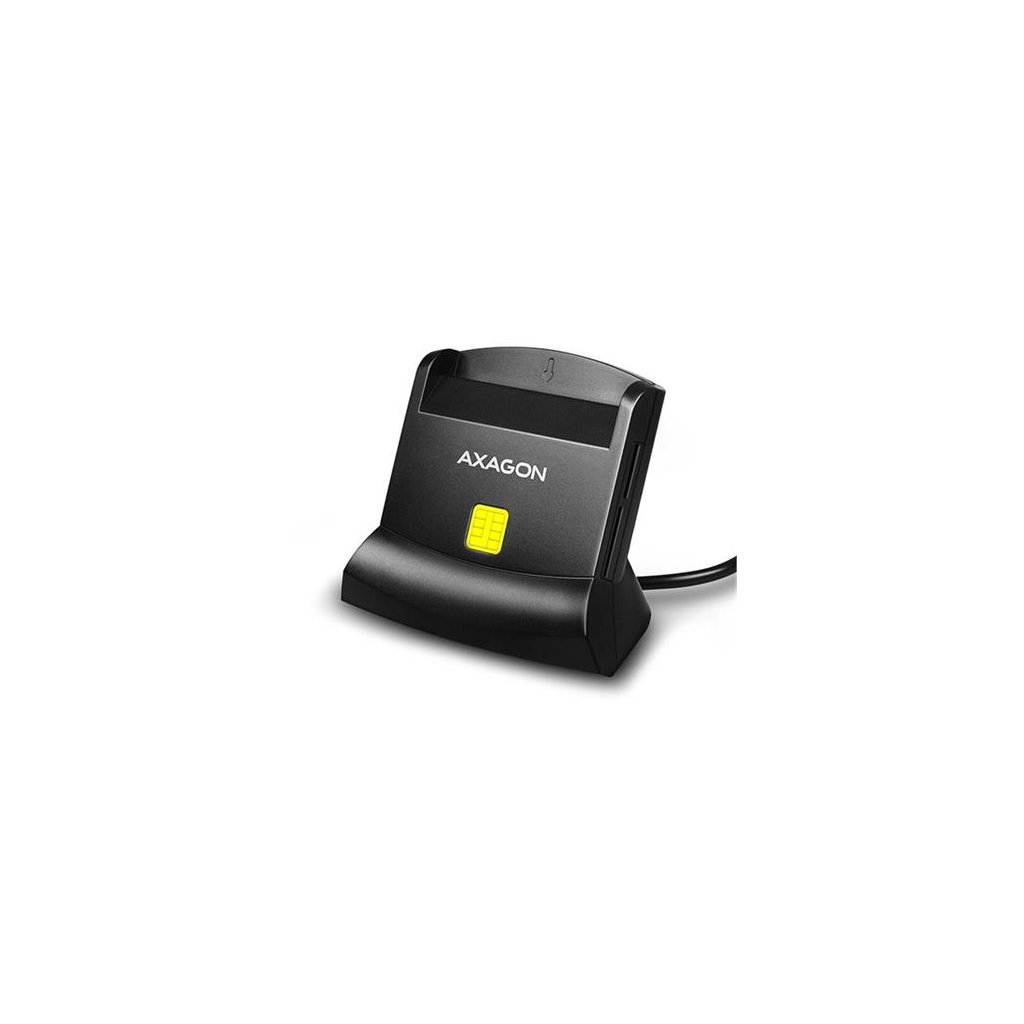 Stojánková stolní čtečka Smart card / ID card AXAGON CRE-SM2 s USB 2.0 rozhraním obsahuje navíc sloty pro paměťové karty SD, microSD a SIM karty. Card reader podporuje všechny běžné formáty Smart karet, čipových karet a dalších kontaktních karet včetně bankovních platebních karet. Čtečka je plně kompatibilní s aplikací eObčanka. Díky slotu pro SIM kartu včetně SW pro správu SIM, slotům pro SD a microSD karty lze čtečku využít i pro zálohu a přenos dat. Kompatibilita se všemi běžnými OS jako Windows, Linux a Mac OS umožňuje široké využití. Promyšlený design, kvalitní provedení, protiskluzové podložky a dostatečně dlouhý kabel zajišťují snadné a bezproblémové použití.