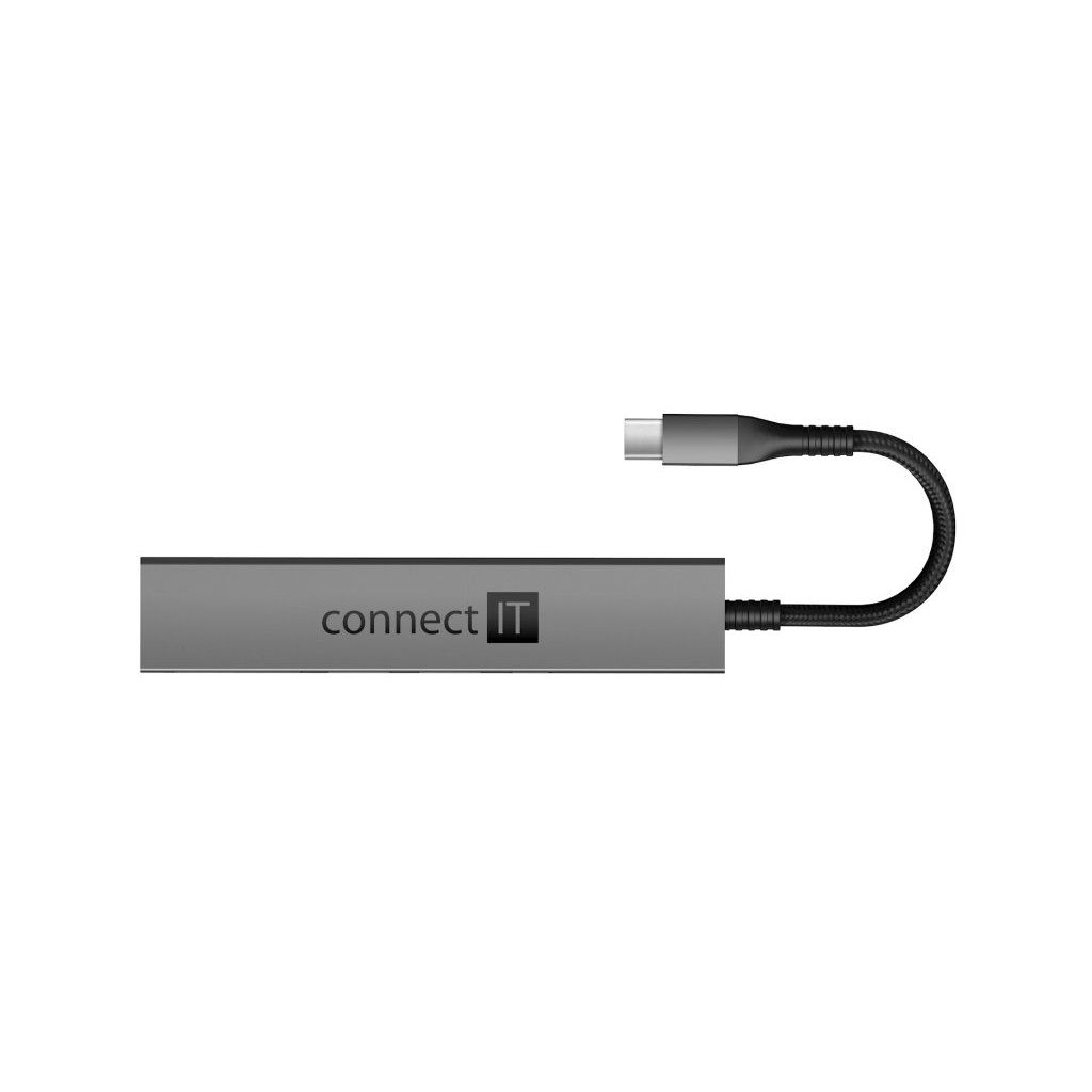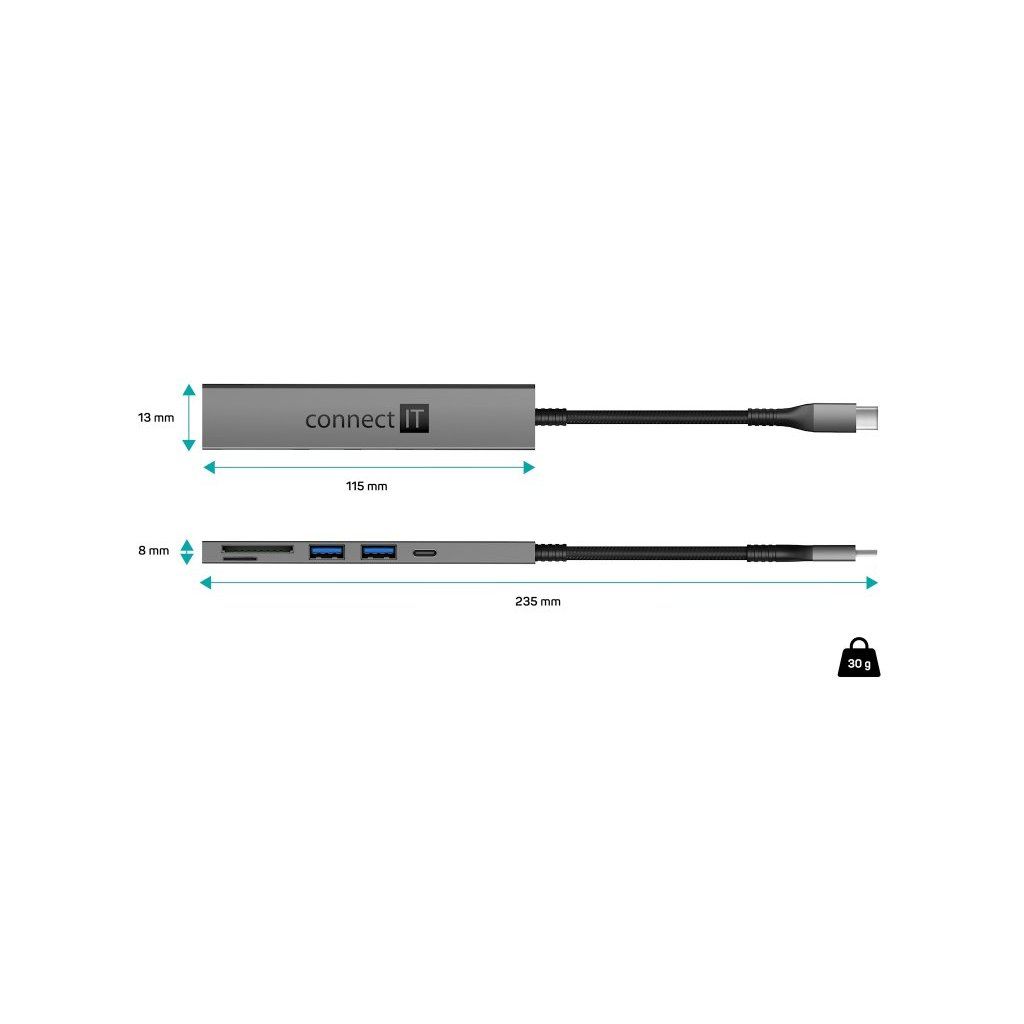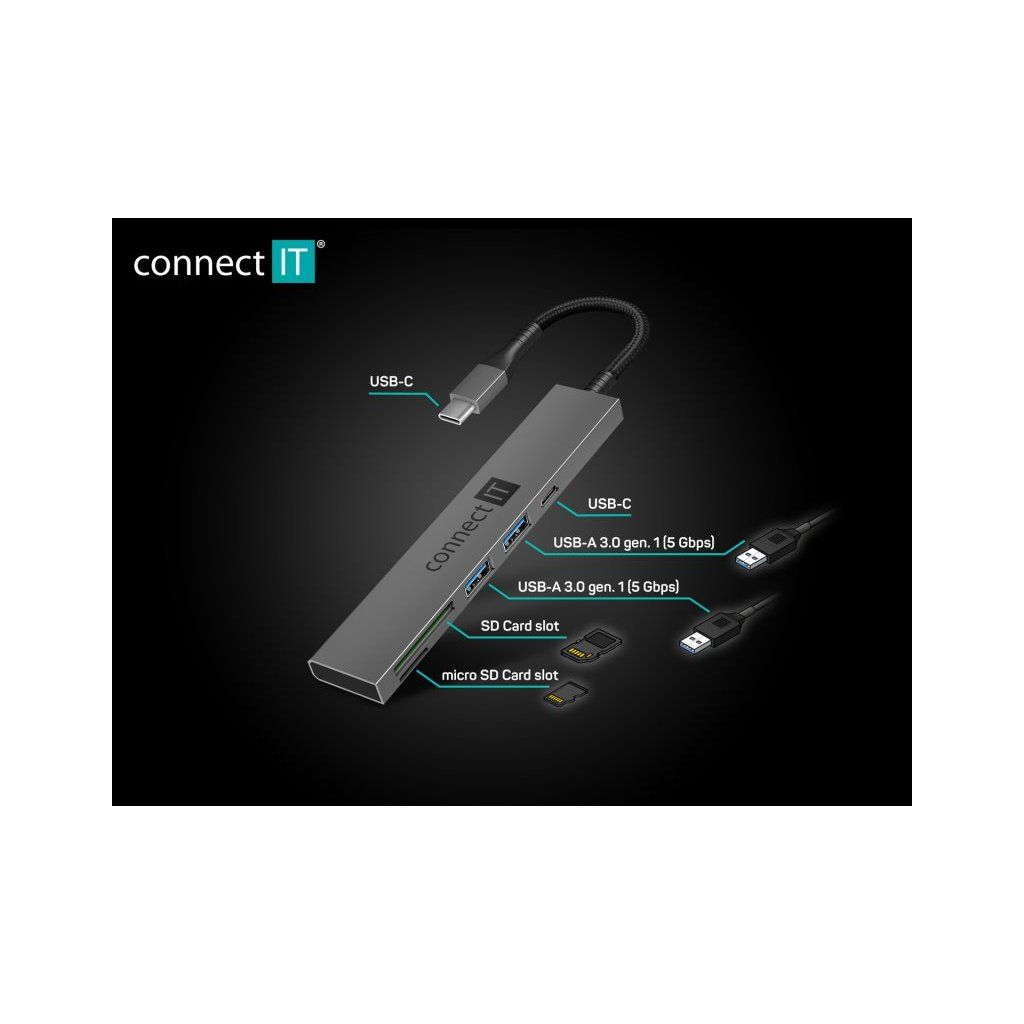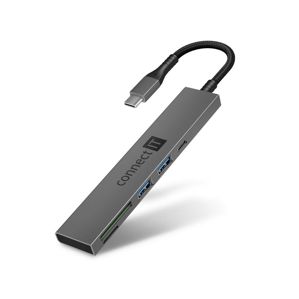 CONNECT IT CompactPRO USB-C hub + čtečka karet, (2xUSB-A 3.0, 1xUSB-C), externí, ANTRACITOVÝ