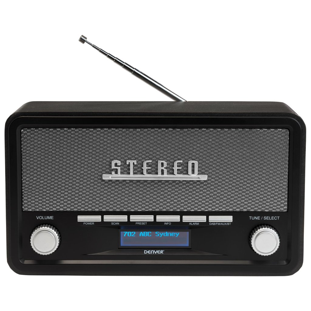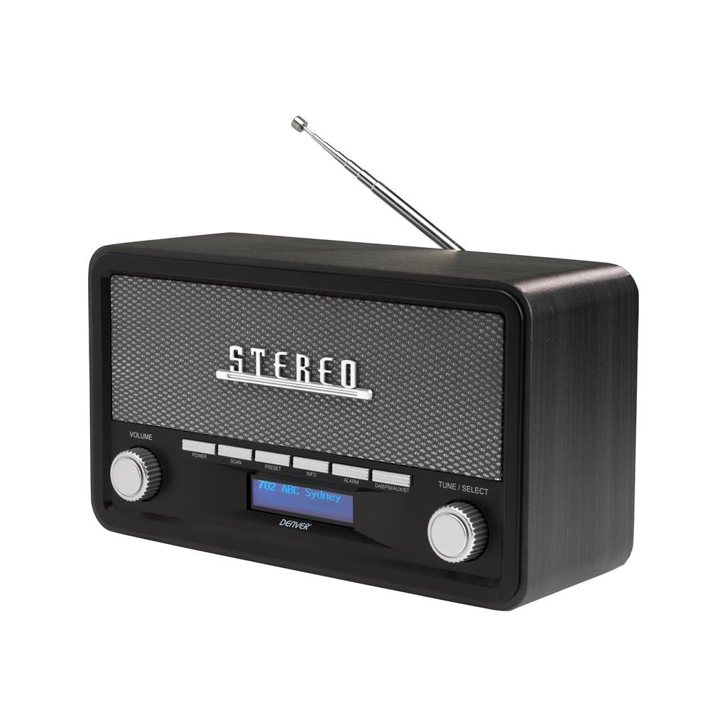 Stylové retro rádio Denver DAB-18DARKGREY nabízí mnohem více než jen poslech rádia. Tento elegantní přístroj v tmavě šedém provedení kombinuje klasický vzhled s nejmodernějšími technologiemi. Díky podpoře digitálního DAB+ vysílání si užijete křišťálově čistý zvuk bez šumu a rušení. Rádio můžete využít jako centrální hudební systém - snadno k němu bezdrátově připojíte svůj chytrý telefon nebo tablet přes Bluetooth, případně využijete AUX vstup pro kabelové propojení s MP3 přehrávačem či jiným zdrojem hudby.