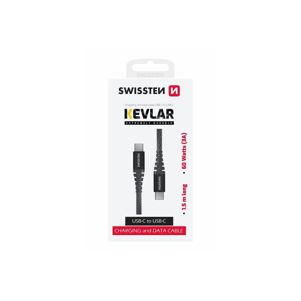 Datový kabel USB-C / USB-CKabelem SWISSTEN KEVLAR lze dobíjet maximálním proudem 3A a lze ho využít i pro technologii rychlého dobíjení s výkonem až 60W