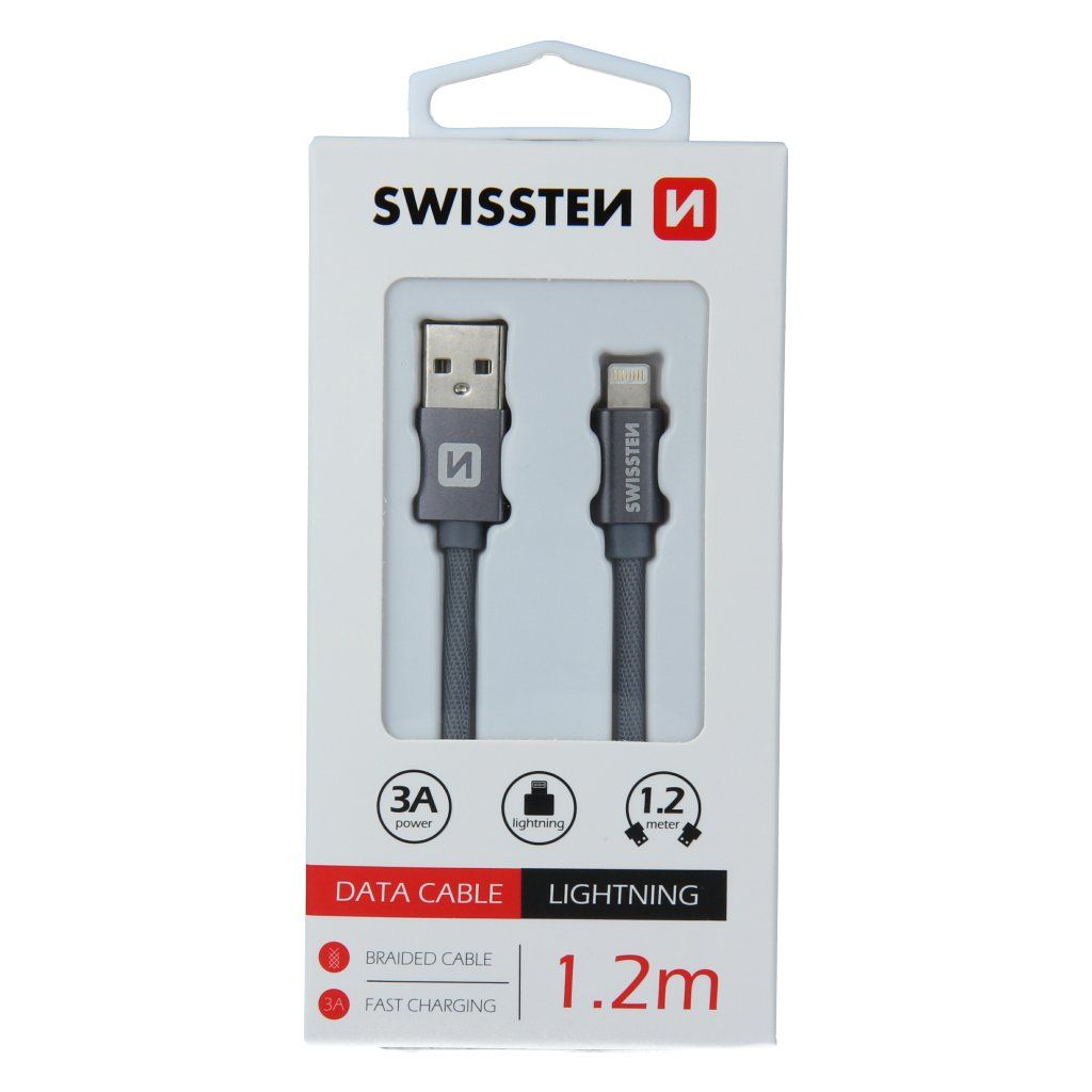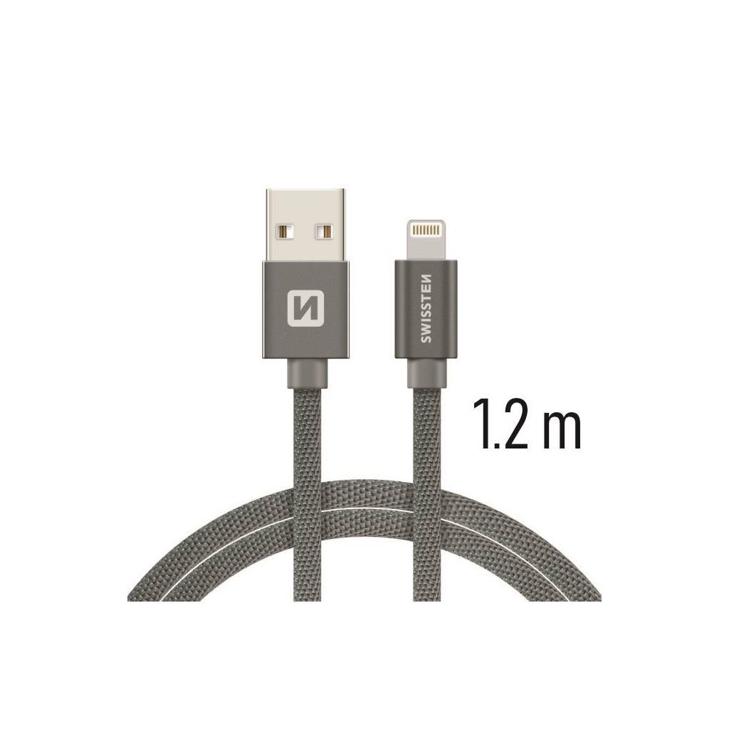 Swissten datový kabel textile USB / Lightning 1,2 M, šedý