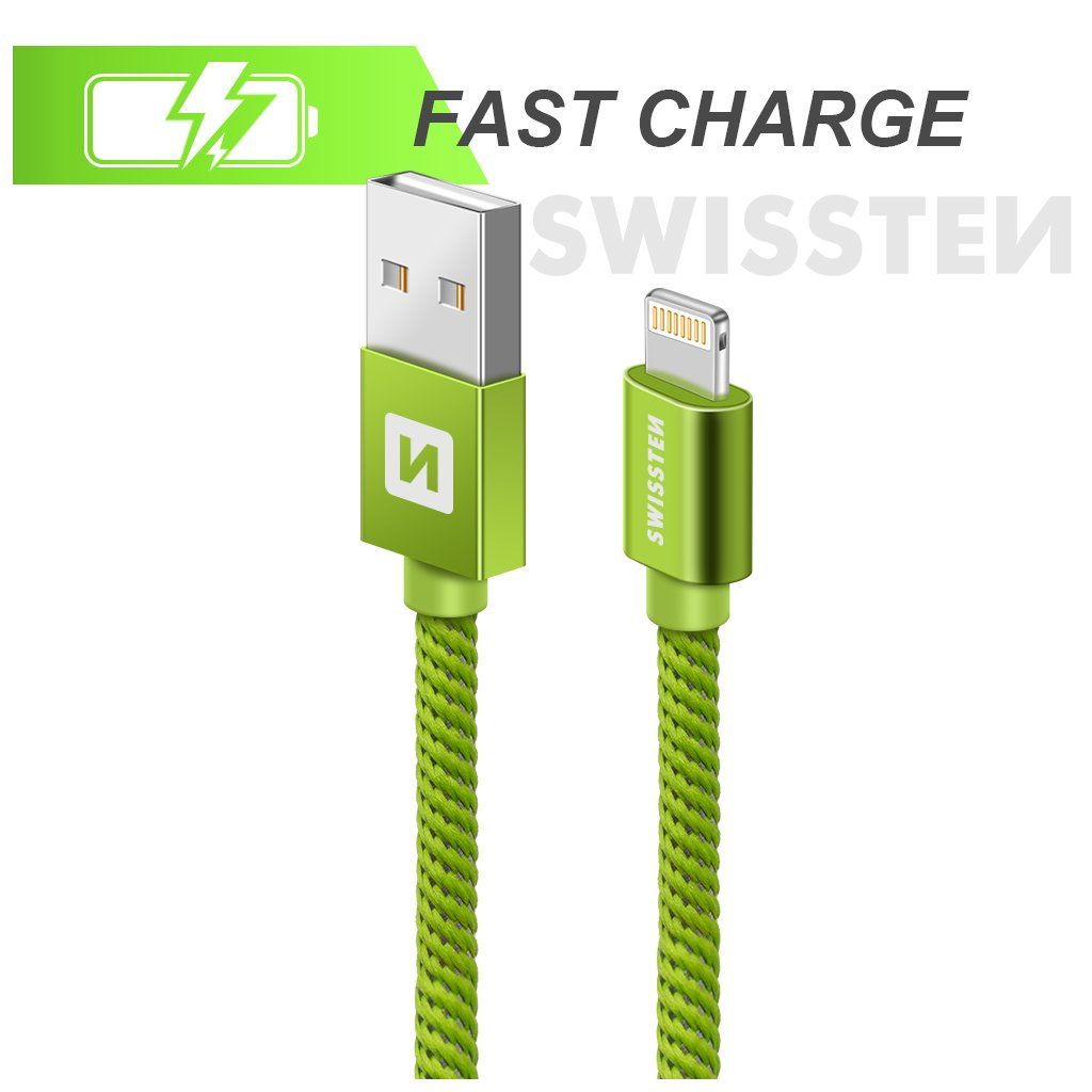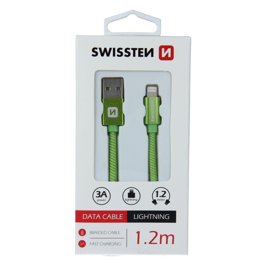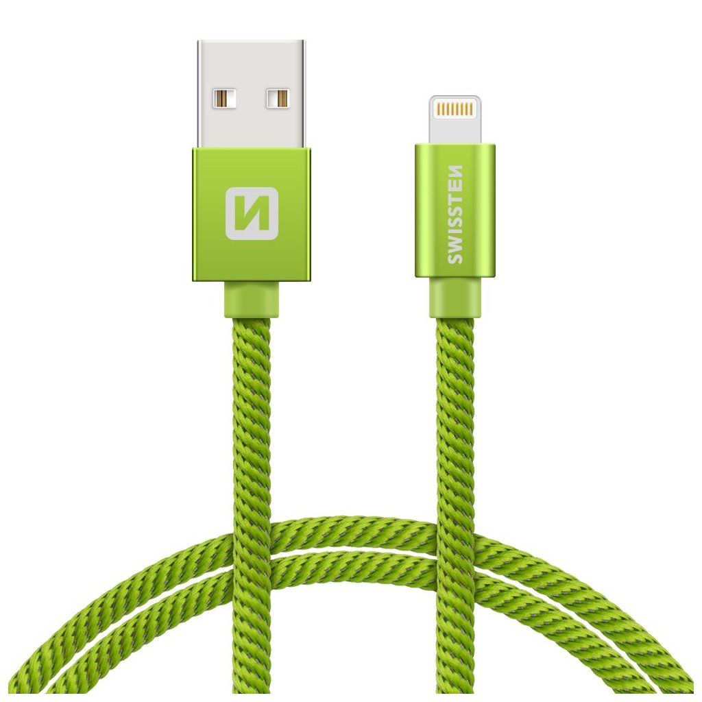 Swissten datový kabel textile USB / Lightning 1,2 M, zelený
