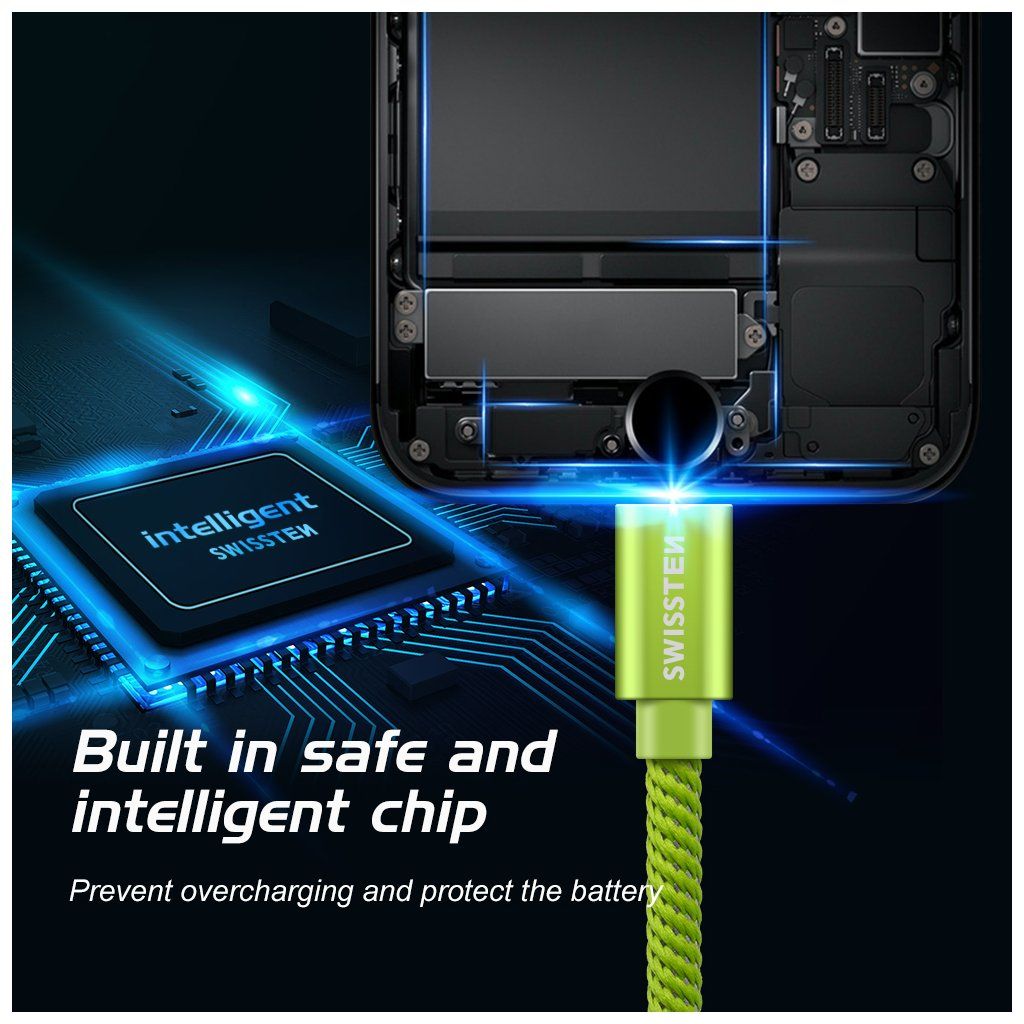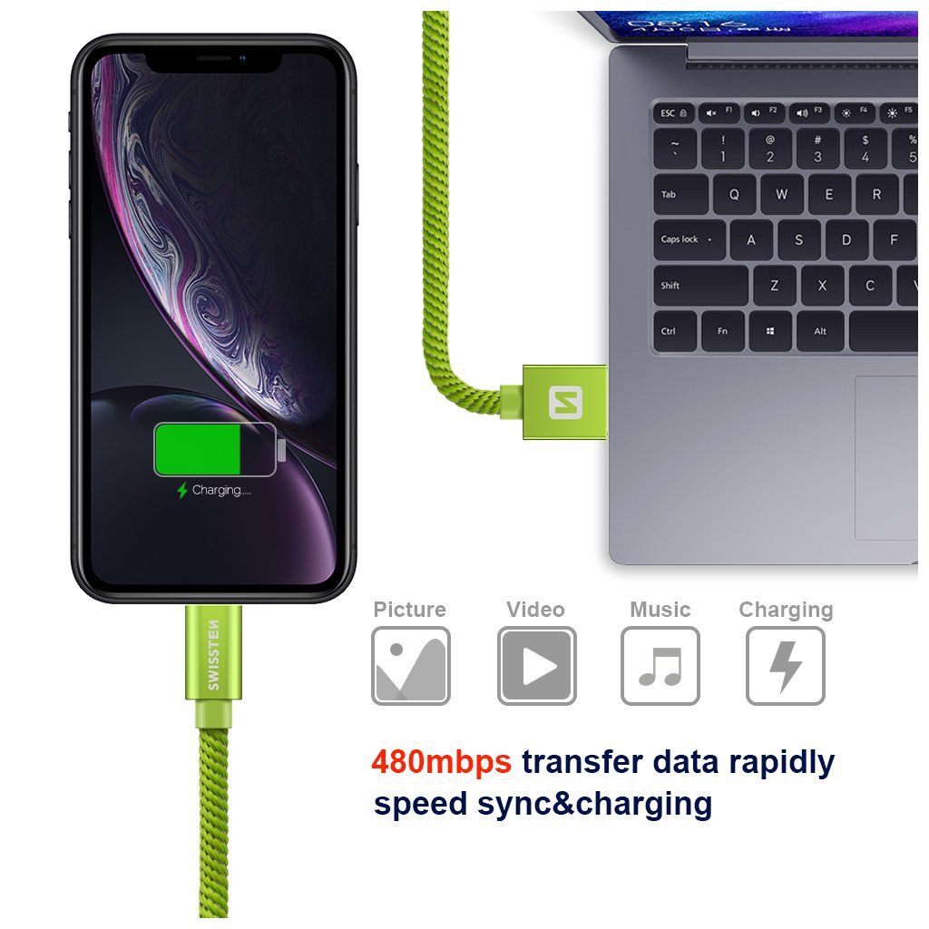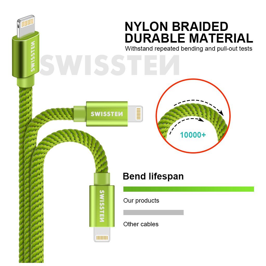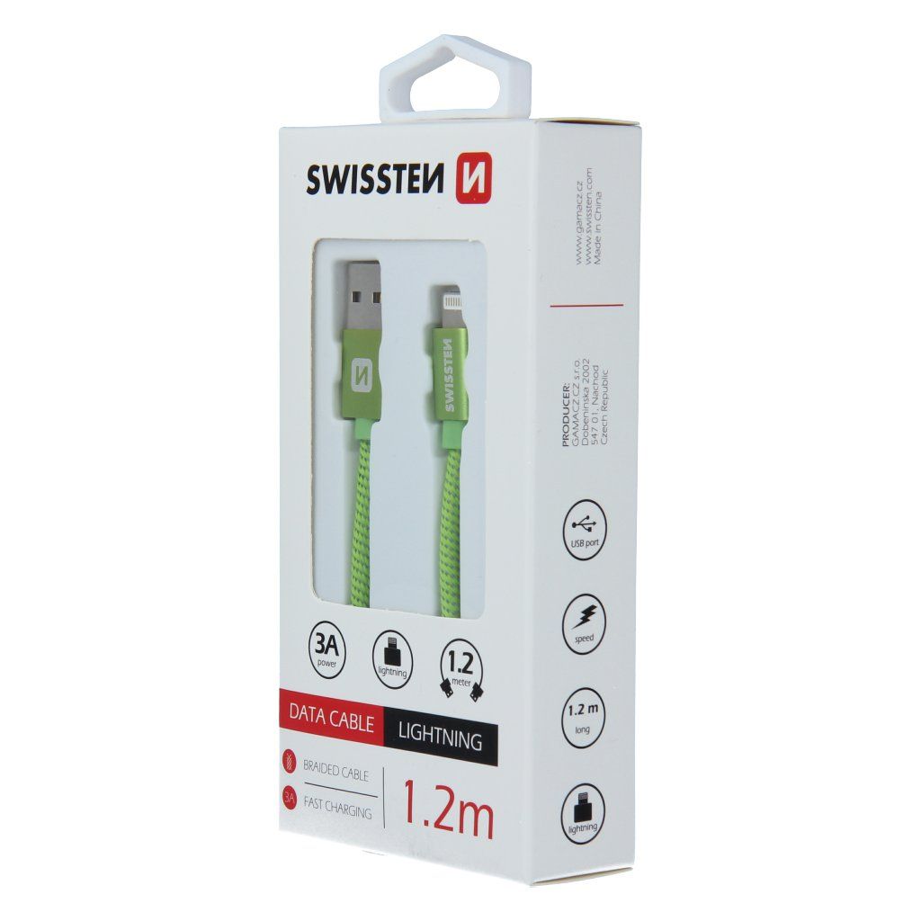 Swissten datový kabel textile USB / Lightning 1,2 M, zelený