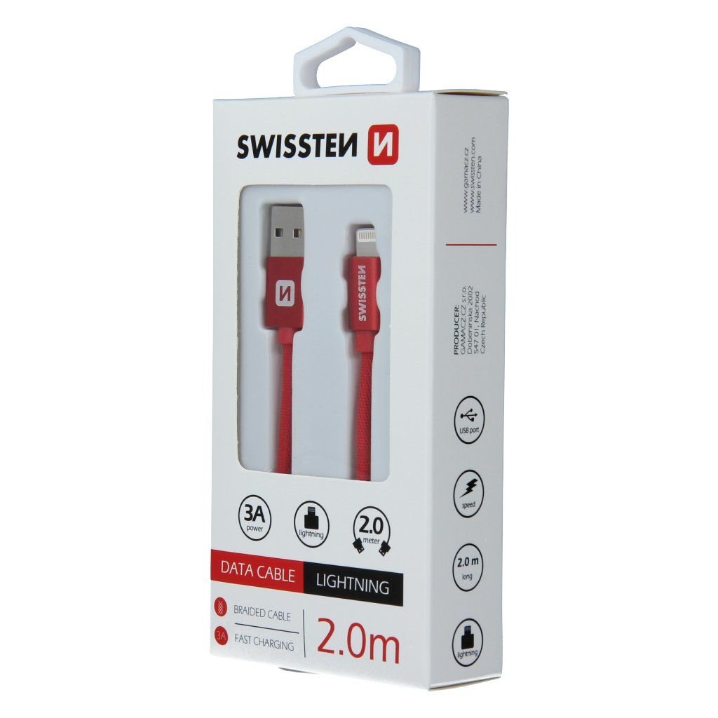 Swissten datový kabel textile USB / Lightning 2,0 M, červený