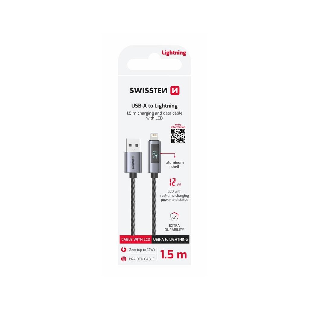 Swissten LCD kabel USB-A Lightning 1,5m