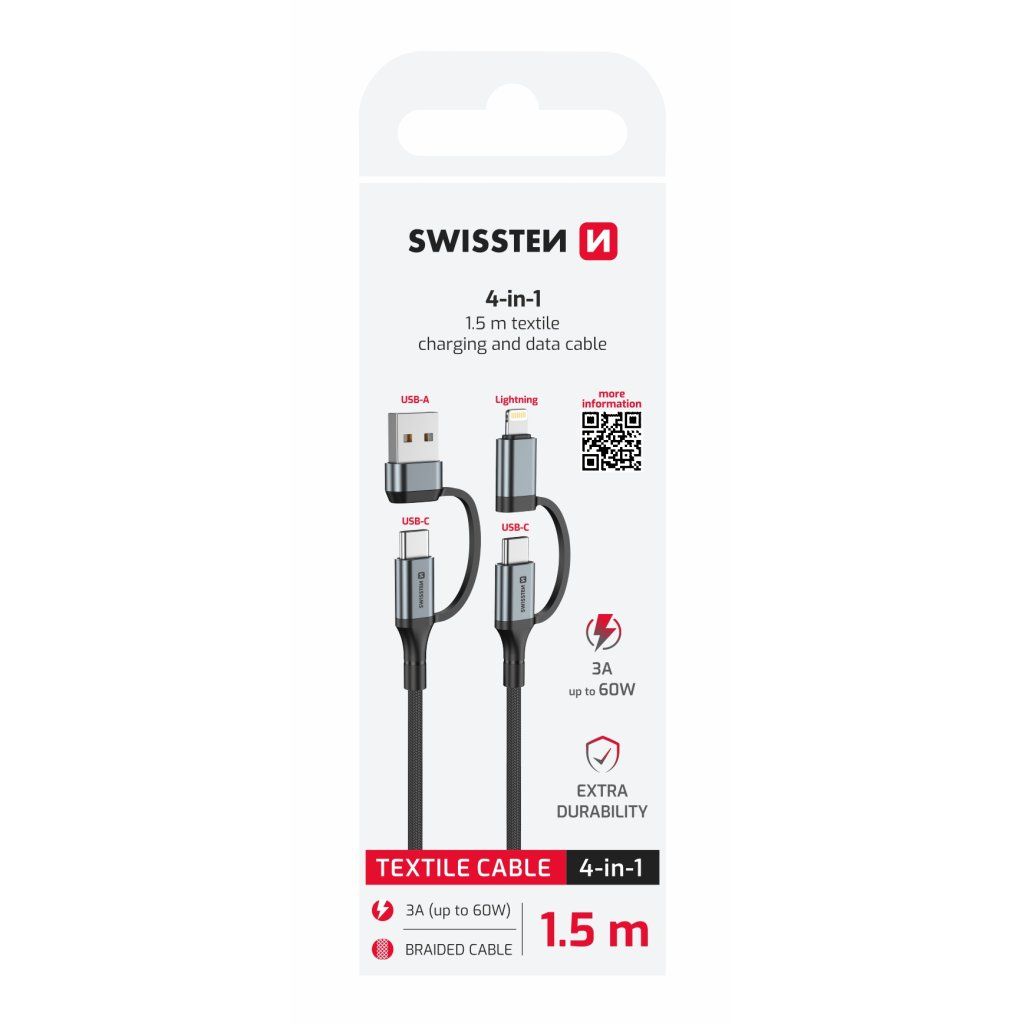 - SWISSTEN 4in1 textilní kabel 1,5 m