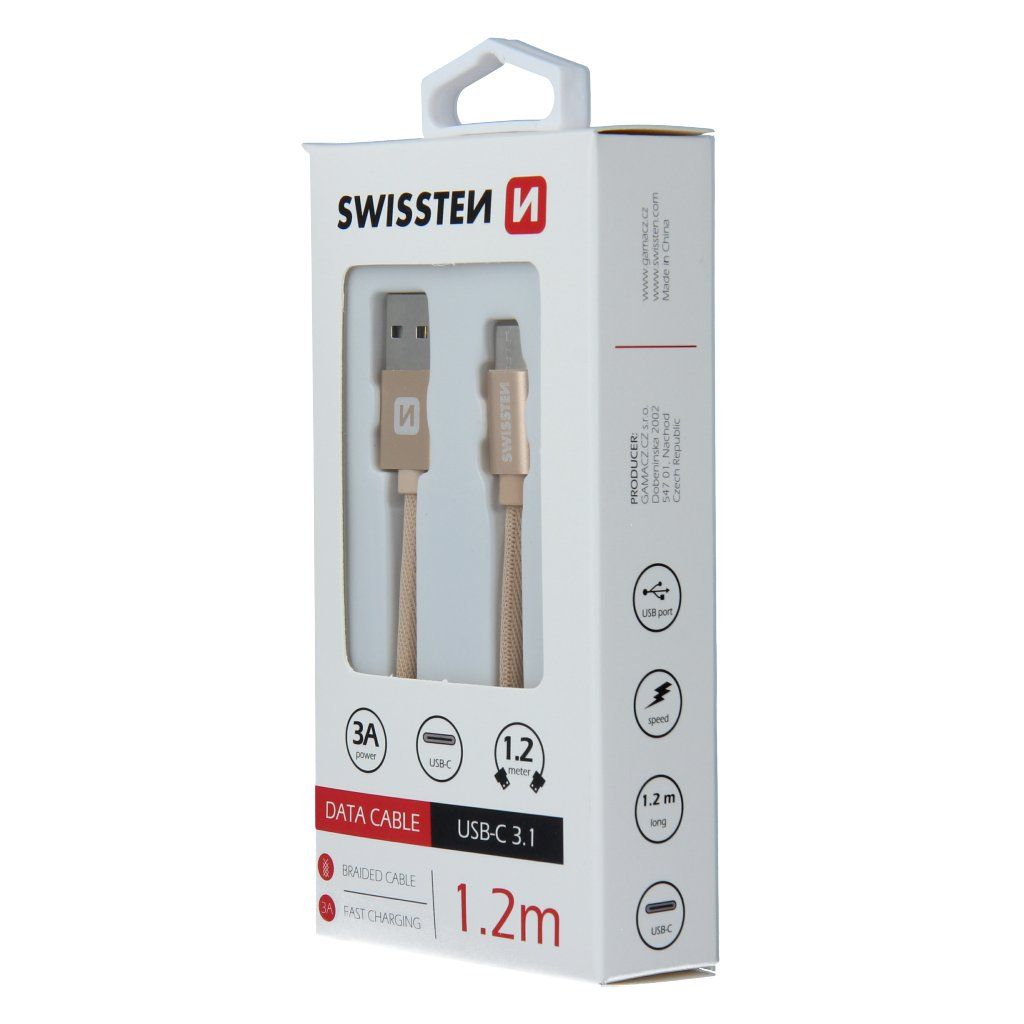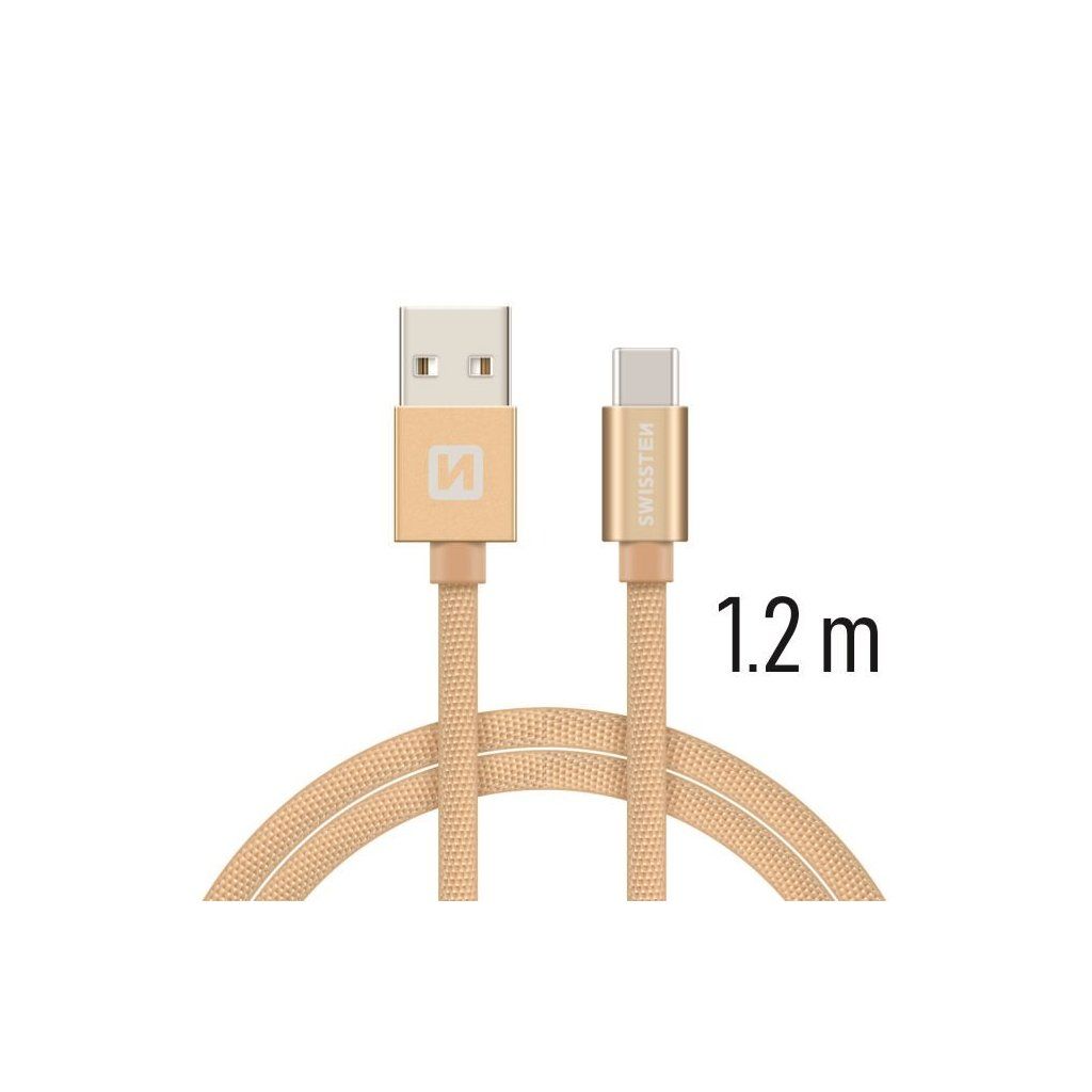 Swissten USB/USB-C 1.2m, zlatý