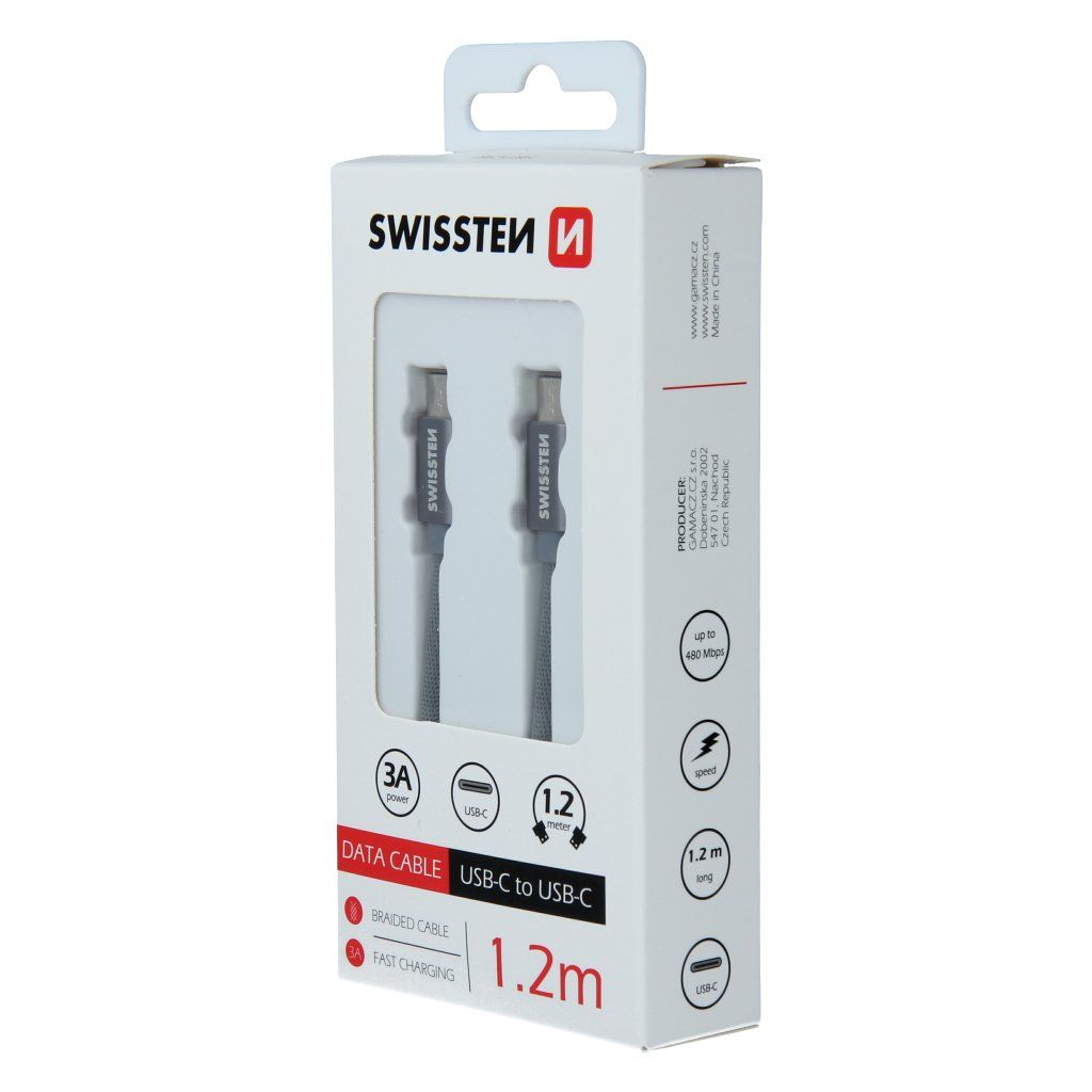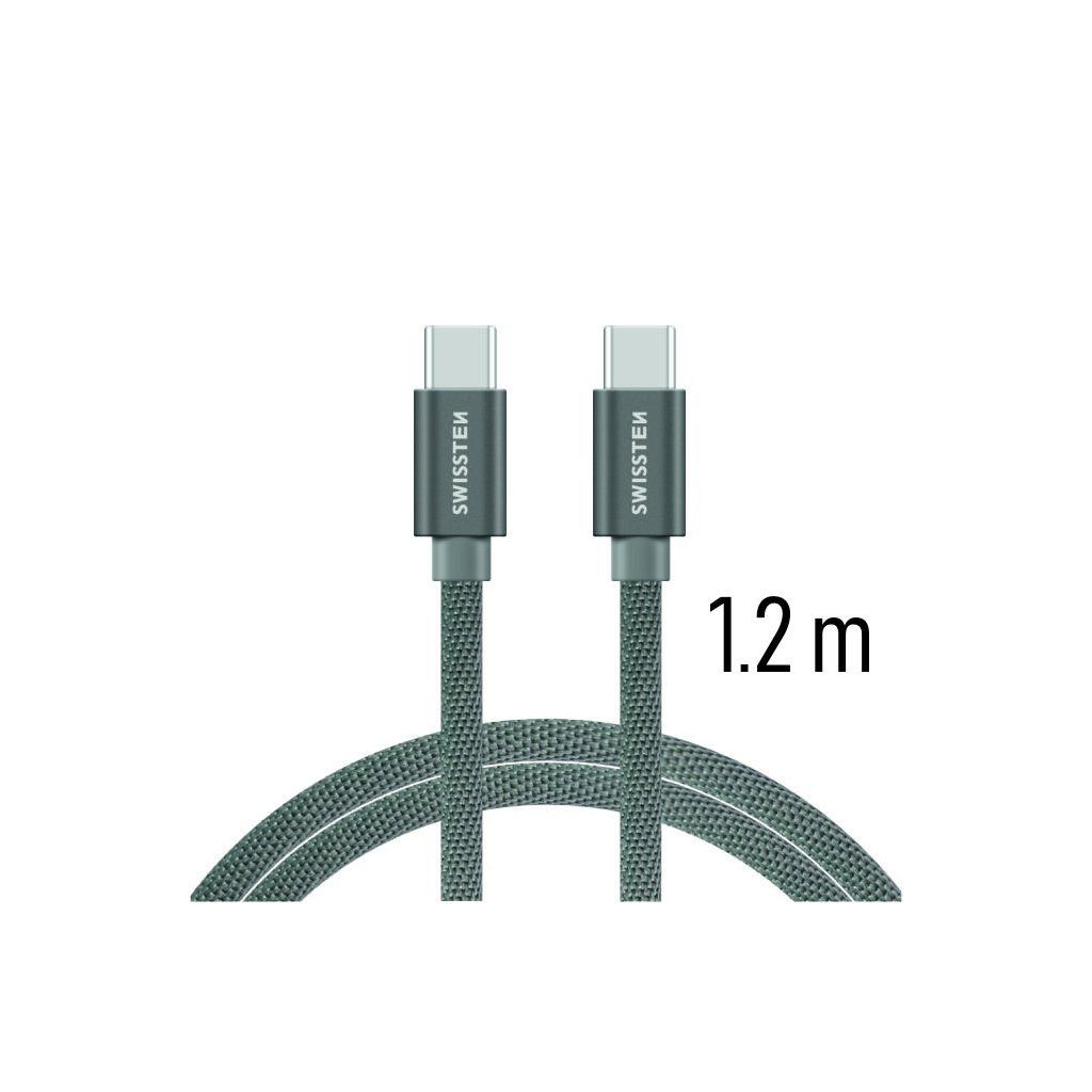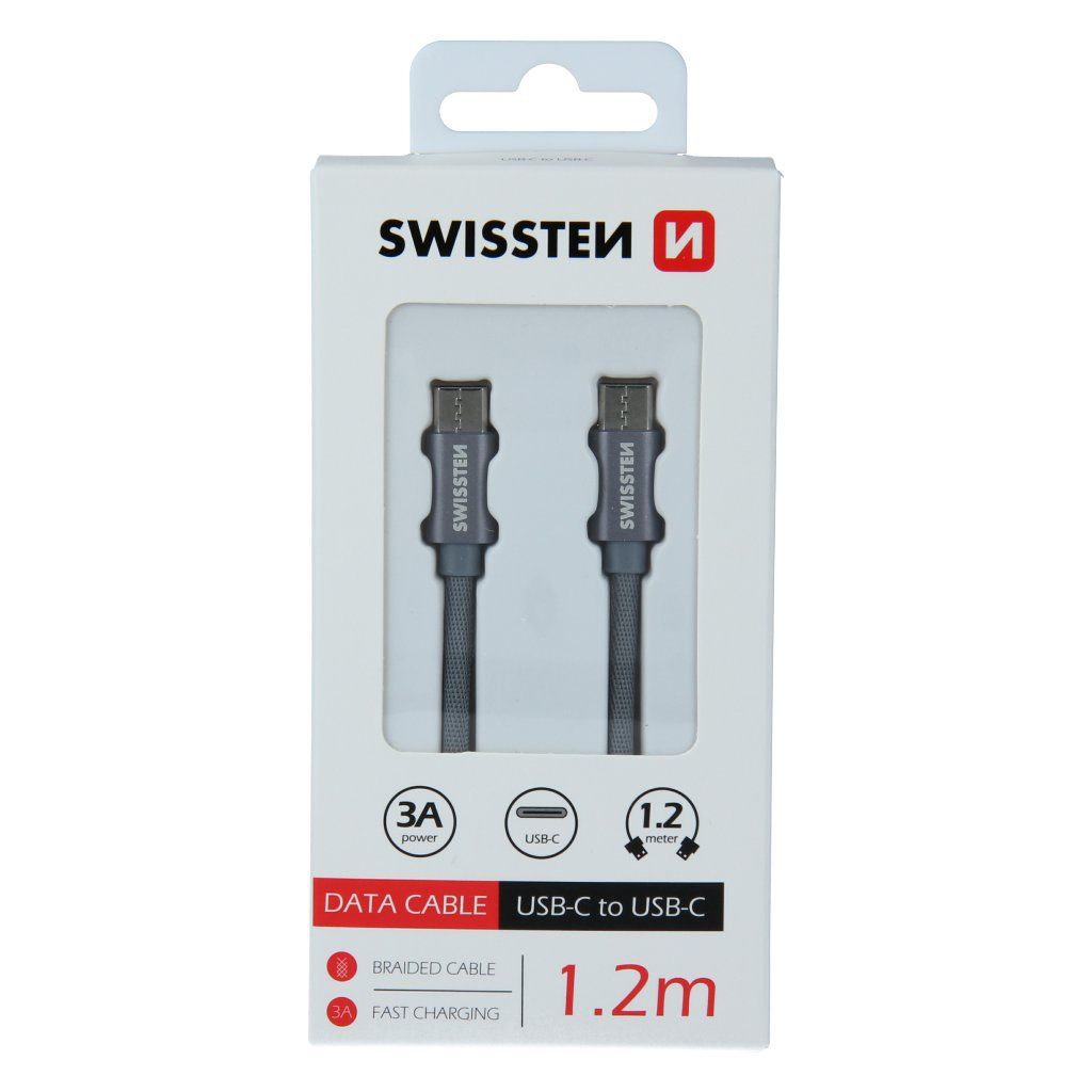Swissten datový kabel textile USB-C / USB-C 1,2 M, šedý
