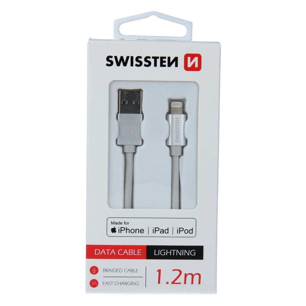 Swissten USB/Lightning MFi 1.2m, stříbrný