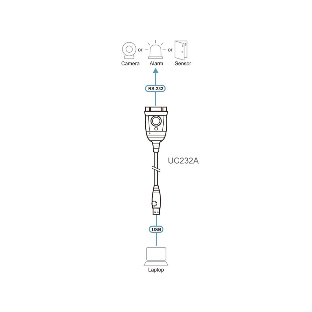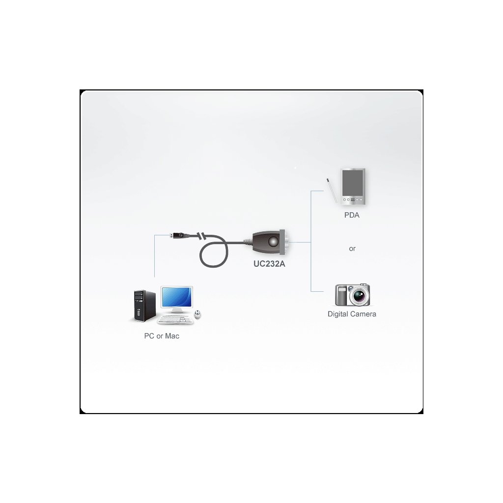 UC232A ATEN USB - RS 232 převodník Aten - osvědčený převodník na mnoha aplikacích - přenosová rychlost 230Kbps - 96 byte buffer - USB v1.1 - nevyžaduje IRQ (nevhodné pro sériovou myš) - konektor Canon 9pin Male - kabel 15cm - výrobce Aten - konektory: USB Type A Plug - DB-9 Male - hmotnost: 60 g - rozměry: 65,9 x 34 x 16 mm - nevyžaduje externí napájení - Chipset Prolific PL2303 - podporuje vzdálený wake-up and power management - pracuje s mobilními telefony , PDA, digitalními kamerami, modemy , ISDN terminály Podporuje: WIN98, WIN ME, WIN 2K, WIN 2003, WIN XP, Windows Vista, Windows 7,8,8.1, Windows 10, LINUX a Mac OS 8.6/9/10,RedHat 7.3, 8, 9 Ideální k notebookům pro připojení modemů, fotoaparátů, programátorů čipů, čteček karet a dalších zařízení, která neumožňují jiné než RS-232 připojení.Doplňkové parametry