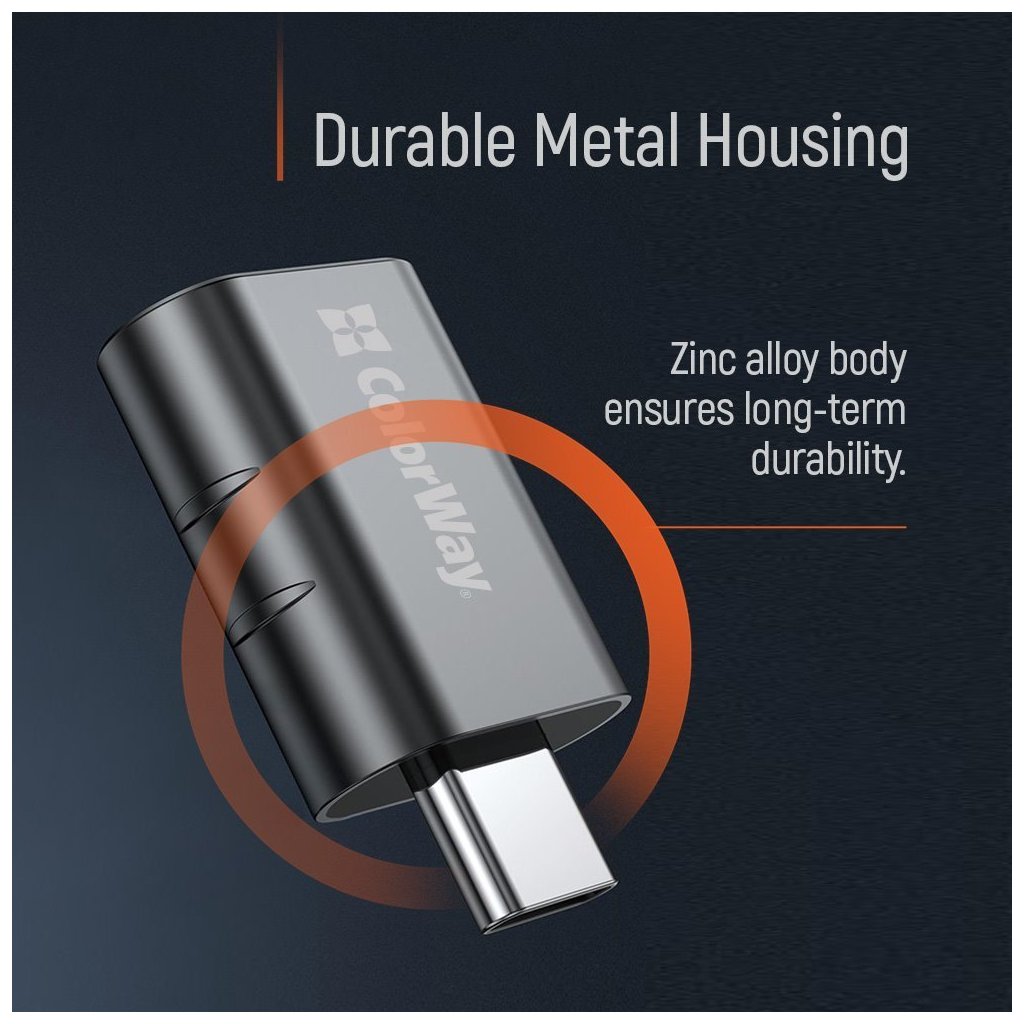 Tento univerzální adaptér od společnosti ColorWay představuje praktické řešení pro připojení tradičních USB zařízení k novým počítačům, laptopům, smartphonům a tabletům vybaveným pouze USB-C konektory. Díky kompaktní konstrukci z odolné zinkové slitiny zajišťuje spolehlivé připojení a dlouhou životnost.