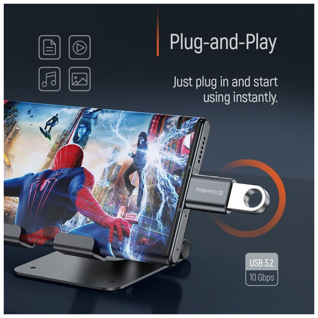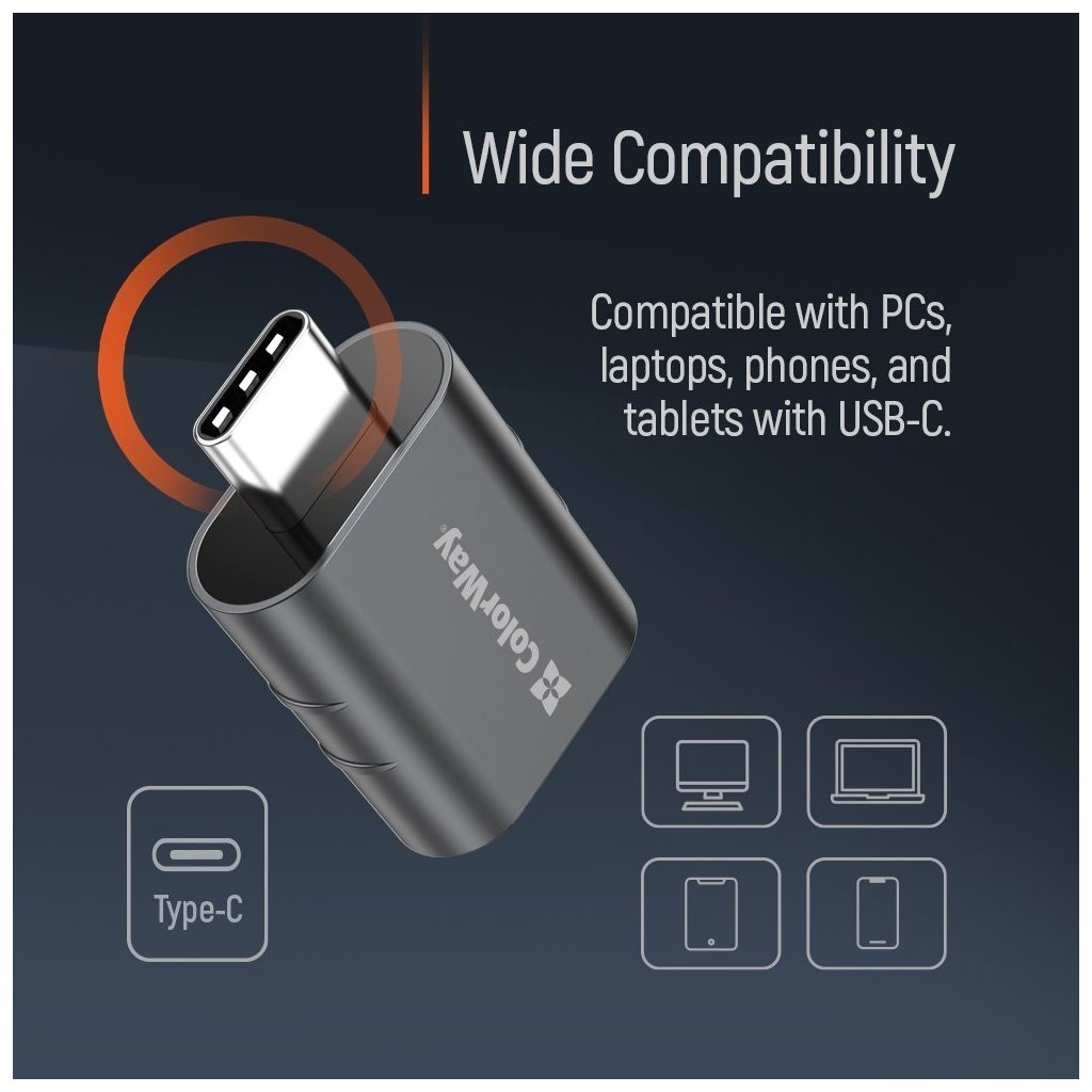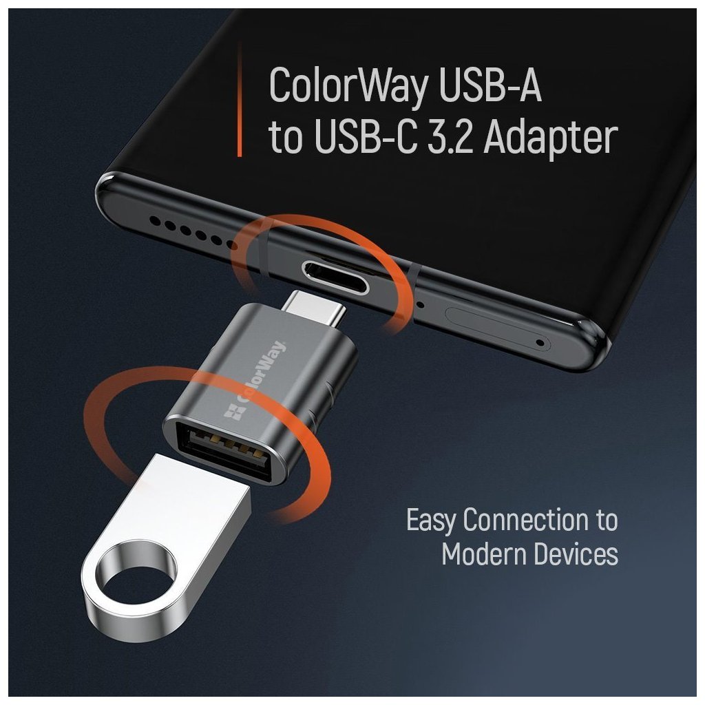 ColorWay adaptér USB na USB-CKompaktní adaptér umožňující snadné připojení USB zařízení k moderním gadgetům s USB-C portem.