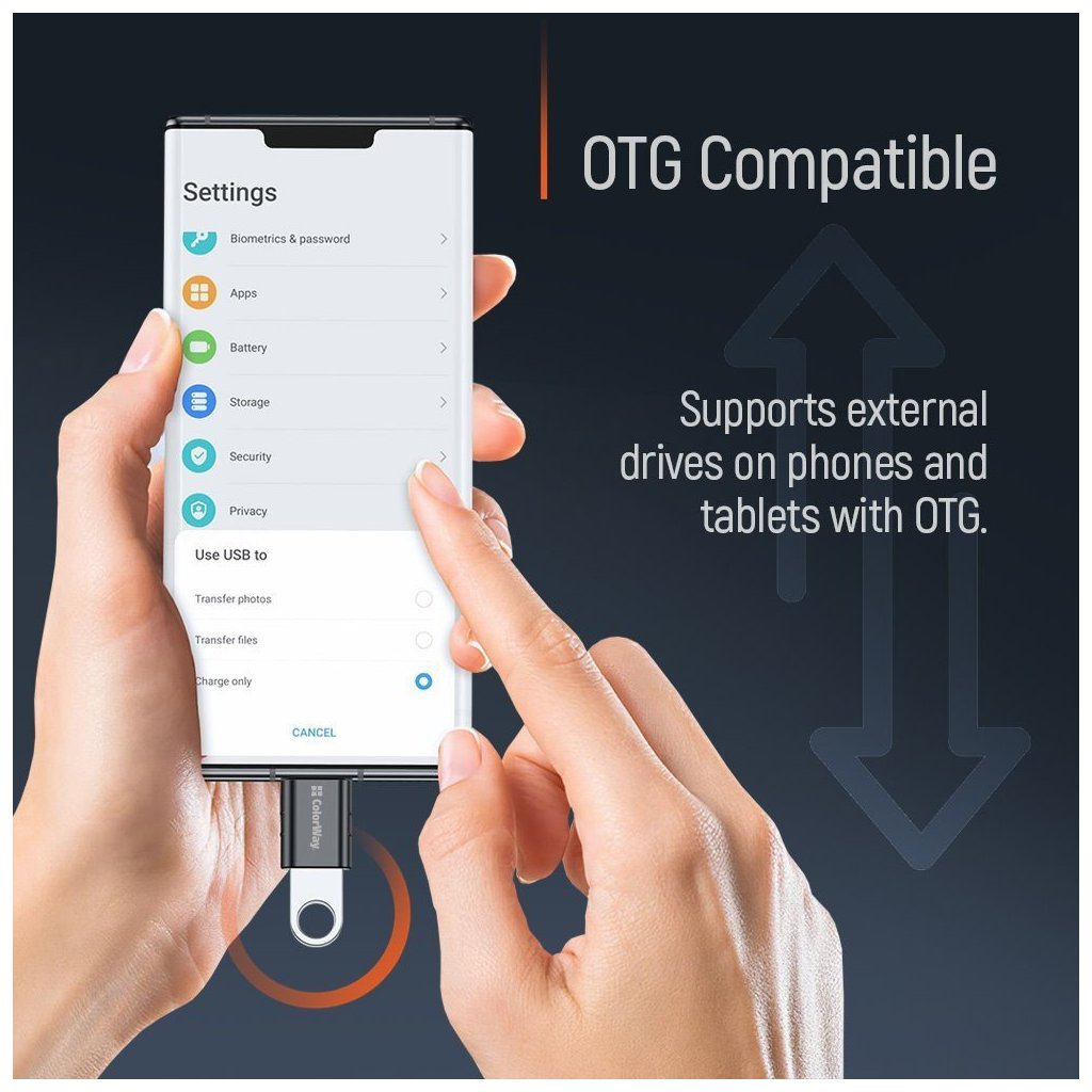 Díky podpoře OTG (On-The-Go) funkcí můžete k smartphonům a tabletům připojovat externí úložiště, klávesnice nebo myši pro rozšíření možností mobilních zařízení.