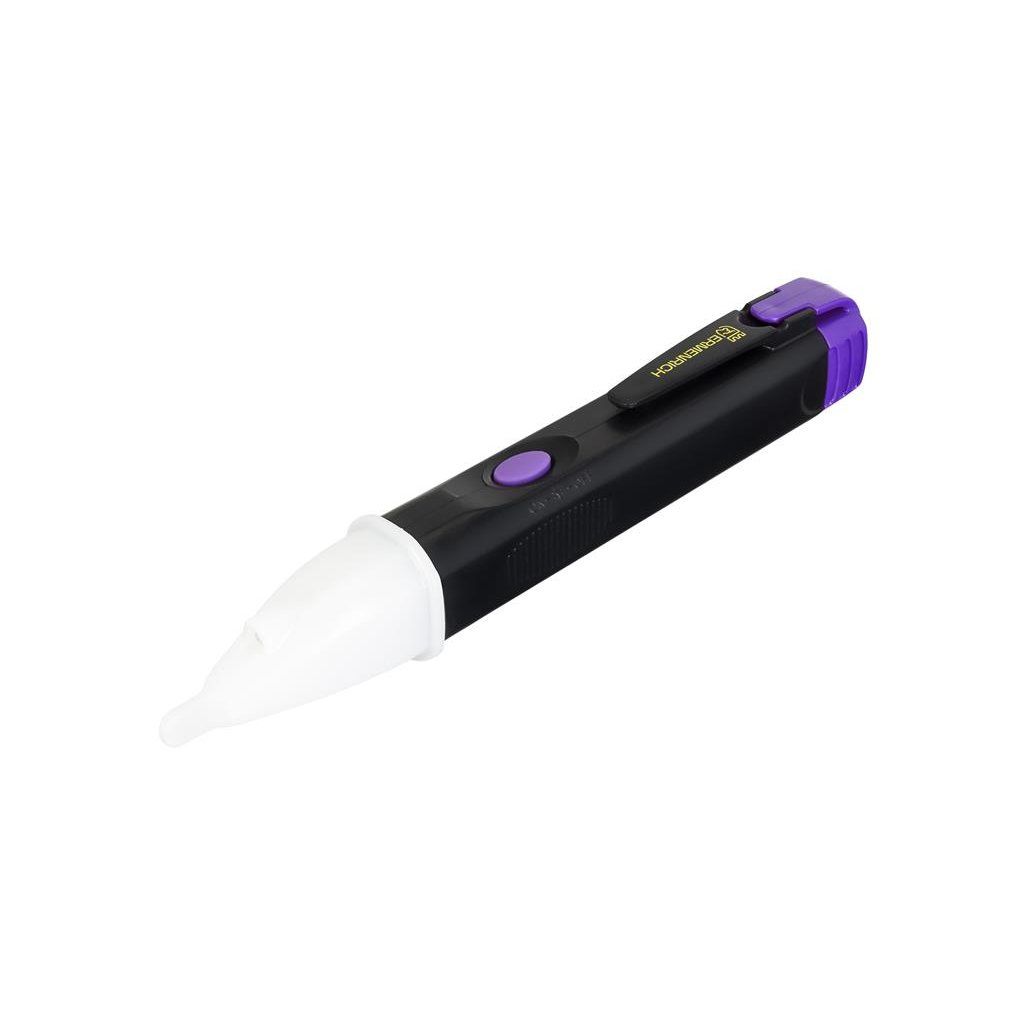 Jedná se o bezkontaktní tester napětí. Pomocí tohoto přístroje můžete kontrolovat buď nízké (12–48 V), nebo vysoké (48–1000 V) střídavé napětí a při detekci vydává různé signály. Pípání bude mít různou výšku a kontrolky budou buď blikat, nebo budou trvale svítit.
