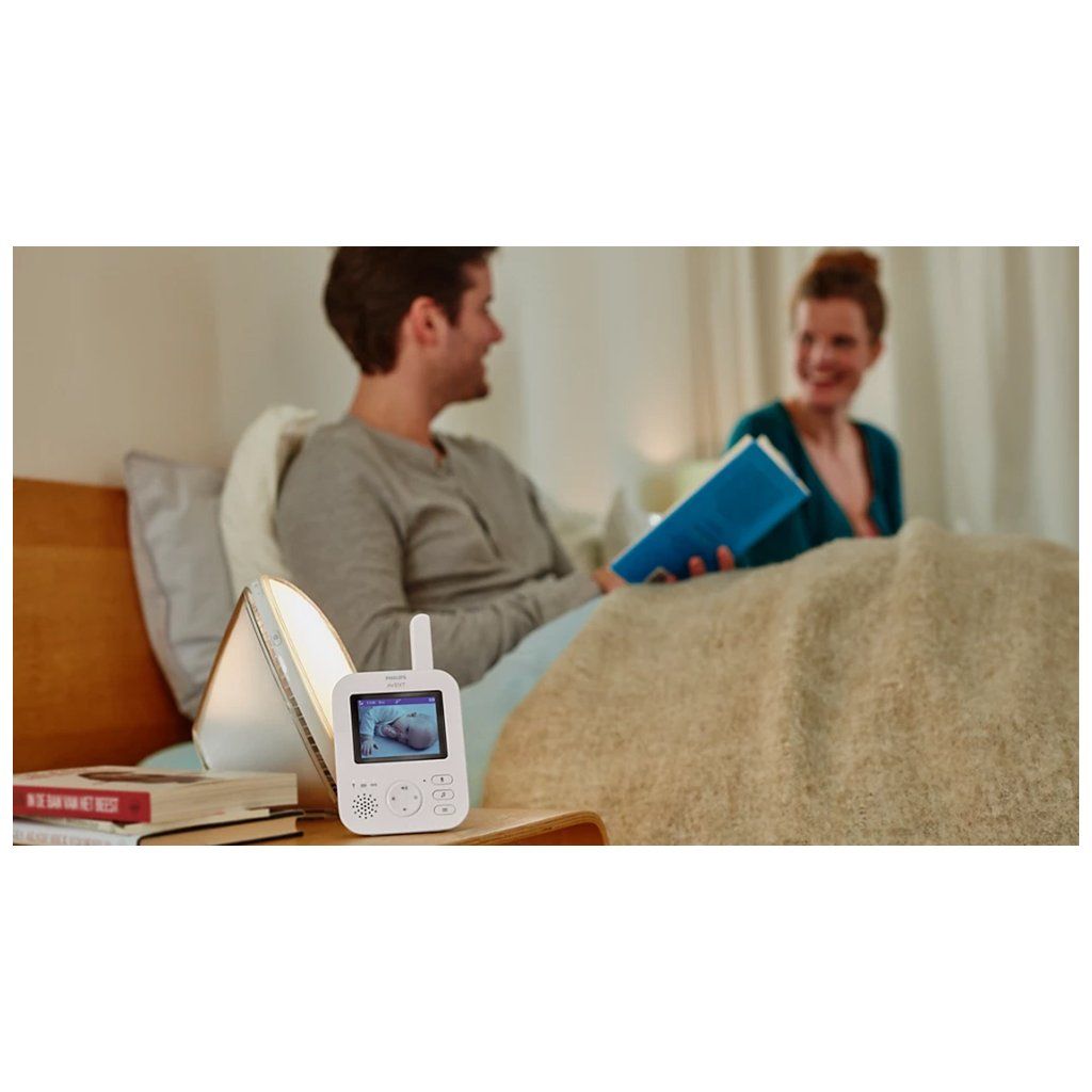 Monitor rodičovské jednotky u dětské chůvičky Philips Avent SCD881/26 disponuje vynikajícím barevným displejem o velikosti 2,8" a vysokým rozlišením, který vám zajistí maximálně ostrý obraz plný nejjemnějších detailů. Díky dvojnásobnému digitálnímu přiblížení budete mít neustále přehled o tom, co dítě právě dělá. Chůvička má také kvalitní infračervené noční vidění, které se automaticky zapne v noci. Bezpečnou a vysoce kvalitní komunikaci mezi dětskou a rodičovskou jednotkou zajišťuje bezdrátová 2,4GHz technologie s minimálním rušením. Nabíjecí rodičovská jednotka vám na jedno nabití vydrží až po dobu 12 hodin. K dispozici je režim ECO s indikátorem připojení, který vypne přenos zvuku a videa a spojí jednotky jen v případě, že je v pokoji nějaká aktivita.