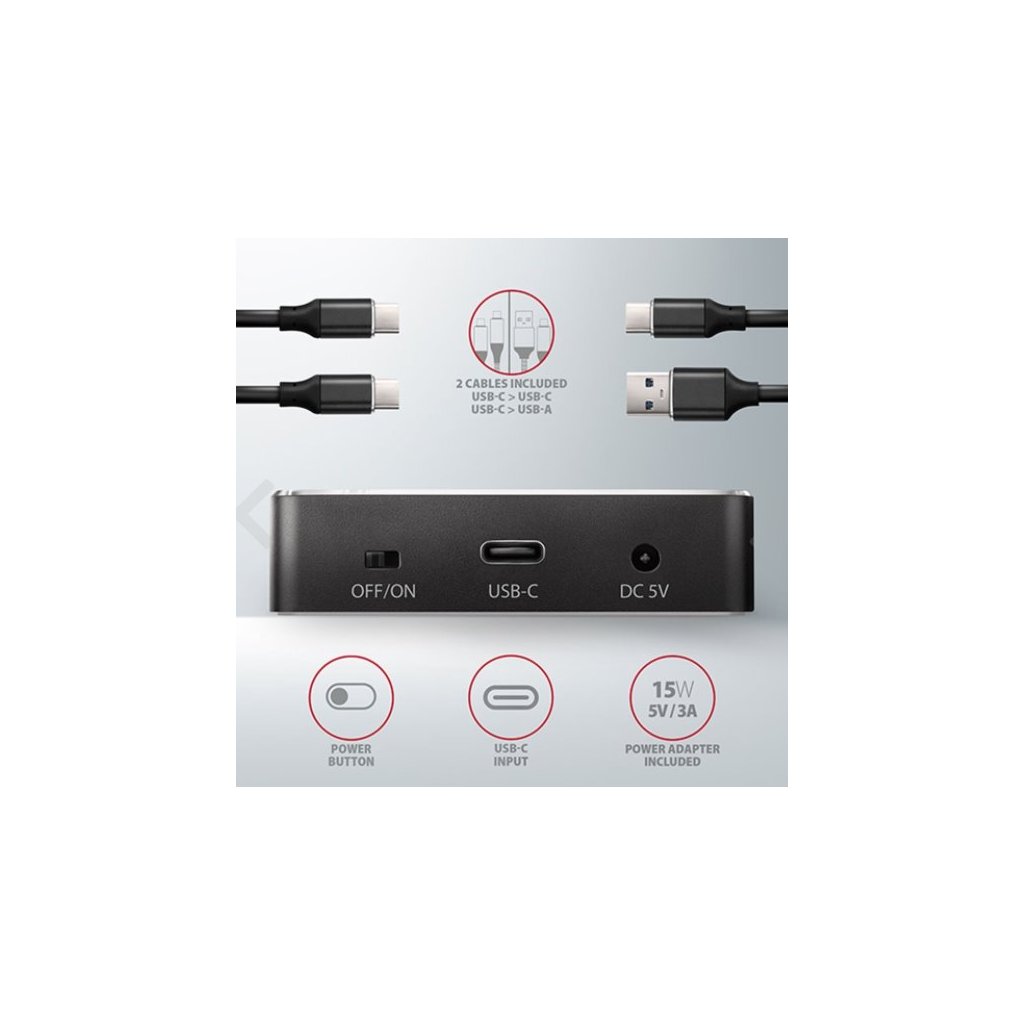 - Připojení přes USB-C female konektor