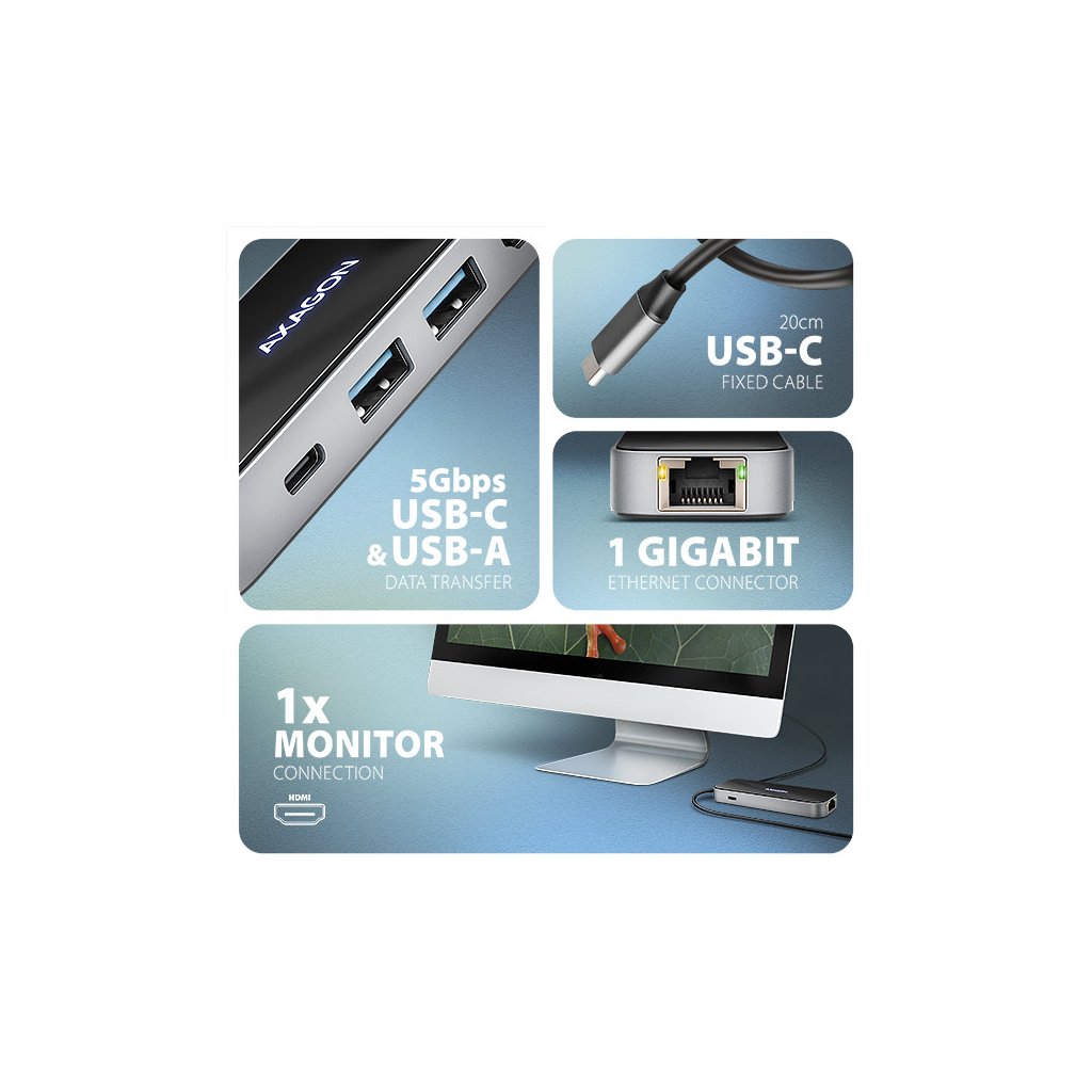 AXAGON HMC-6GLN – multiportový USB-C hub 6v1