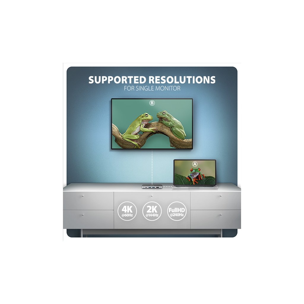 Díky elegantnímu hliníkovému tělu s podsvíceným logem a pasivnímu chlazení zajišťuje hub nejen prémiový vzhled, ale i stabilní provoz. Technologie Plug and Play a Hot Plug umožňují jednoduché použití bez složité instalace.