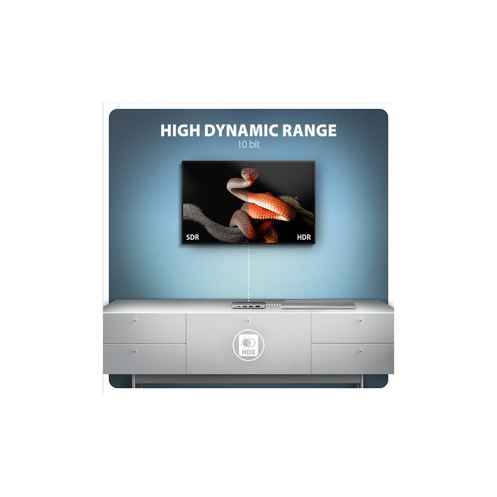 - HDMI výstup: Podpora rozlišení až 4K/60Hz Ultra HD, 2K/144Hz Quad HD nebo 1080p/240Hz Full HD s technologií HDR pro rozšířený rozsah barev a kontrastů.
