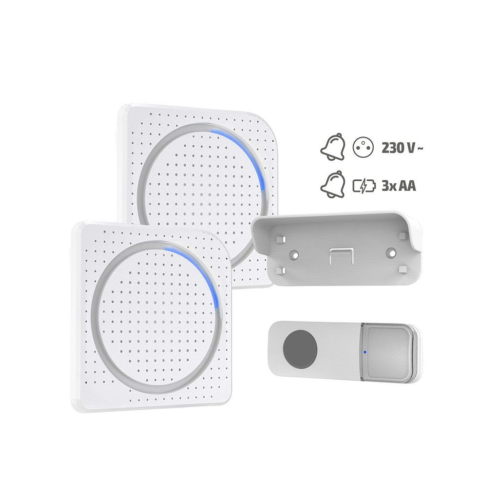 - jeden zvonek zapojený do zásuvky a druhý přenosný na baterie.