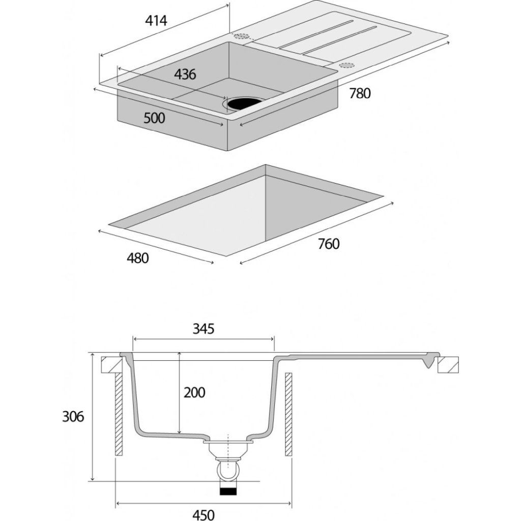 - Rozměry vaničky (d x š x h): 436 x 345 x 200 mm