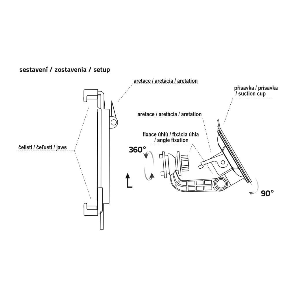Rozsah úchytu 11,5 - 25 cm umožňuje upevnění tabletů 7" - 10,1".