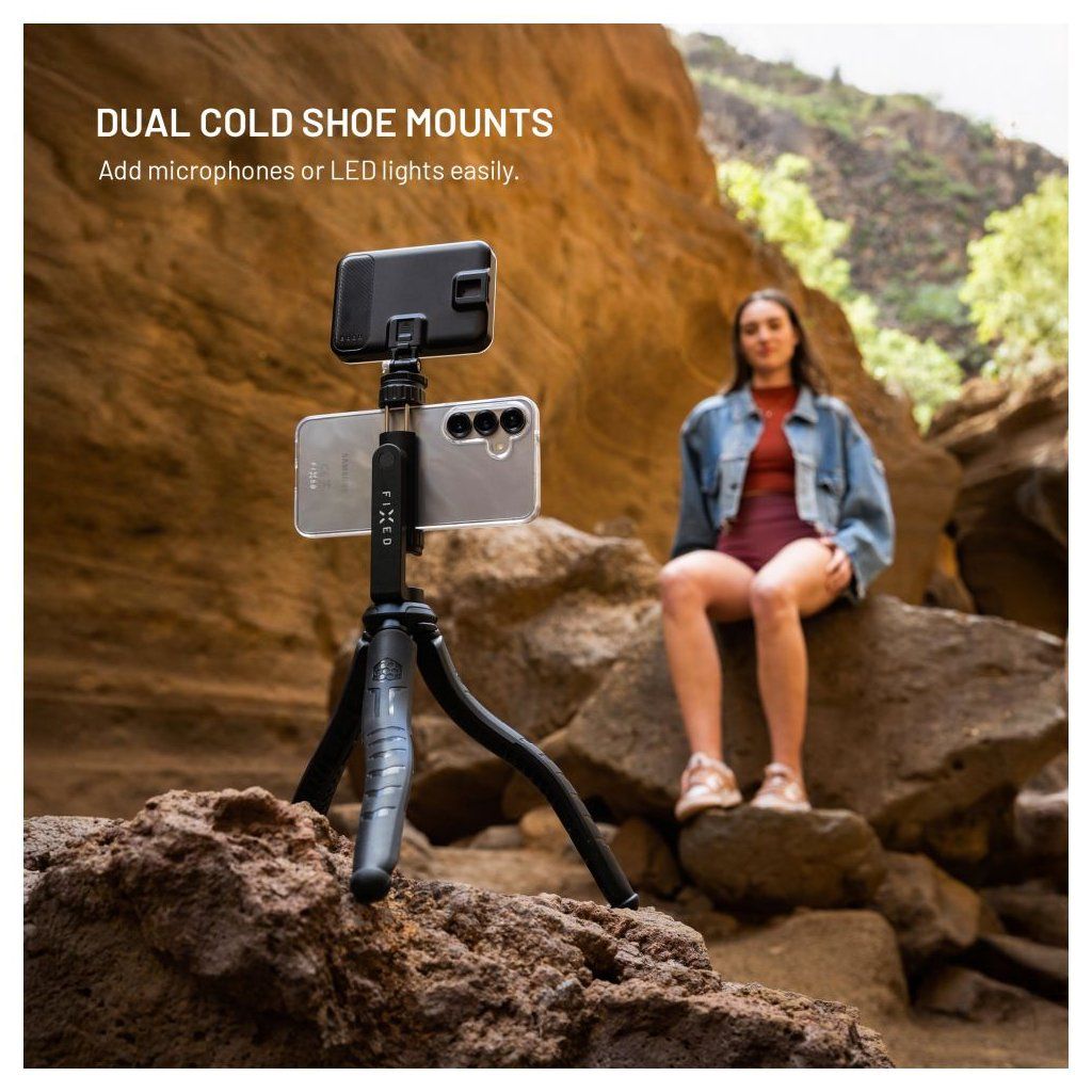 Flexibilní stativ FIXED Creator je ideální pomocník pro focení, natáčení i streamování kdekoli v terénu i doma. Jeho nohy, vyztužené sedmi ocelovými prameny, lze libovolně ohýbat nebo bezpečně omotat kolem větví, zábradlí či sloupků. Snadno tak získáte dokonalý záběr i na netradičních místech. Pogumovaný povrch zajišťuje maximální stabilitu a zabraňuje klouzání na hladkém povrchu. Součástí stativu je nastavitelný držák pro uchycení telefonů do velikosti 6,9", které před poškrábáním chrání vnitřní polstrování kleští. Díky otočnému kloubu lze nastavit držák do horizontální i vertikální pozice pro ten nejlepší úhel. Držák je zároveň doplněn o dva praktické cold shoe adaptéry k uchycení mikrofonu nebo LED světla. Po odejmutí držáku můžete využít univerzální 1/4" závit pro přichycení kompatibilních fotoaparátů, akčních kamer či dalšího příslušenství. Kompaktní rozměry a nízká hmotnost z něj dělají univerzální stativ pro každého, kdo chce tvořit kreativní záběry kdekoliv a bez omezení.Vlastnosti: