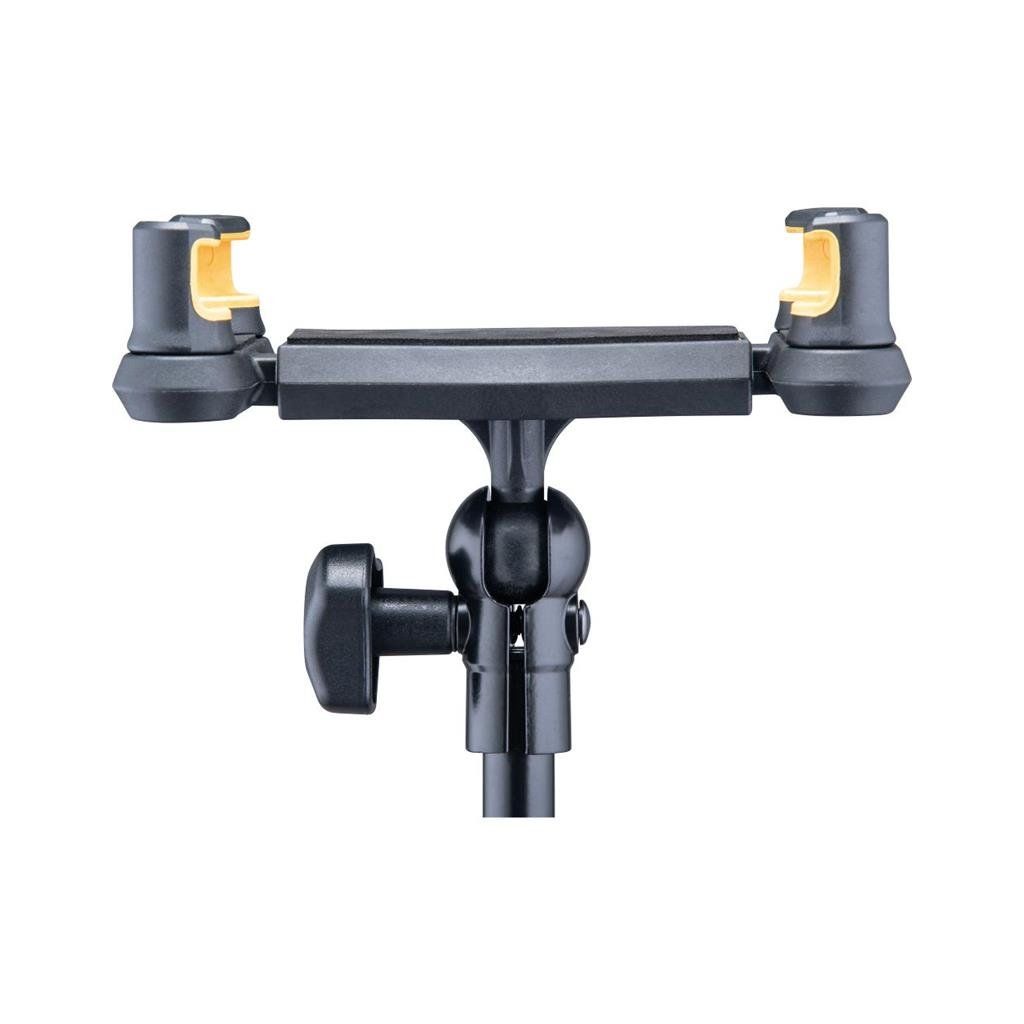 Hercules DG307B je univerzální držák tabletu, který vám umožní pohodlně připevnit tablet nebo jiné mobilní zařízení k desce stolu, mikrofonnému stojanu či jiné tyčové konstrukci. Díky robustní konstrukci a promyšlenému upínacímu mechanismu získáte stabilní a flexibilní řešení pro práci, hudební produkci, prezentace nebo sledování obsahu.