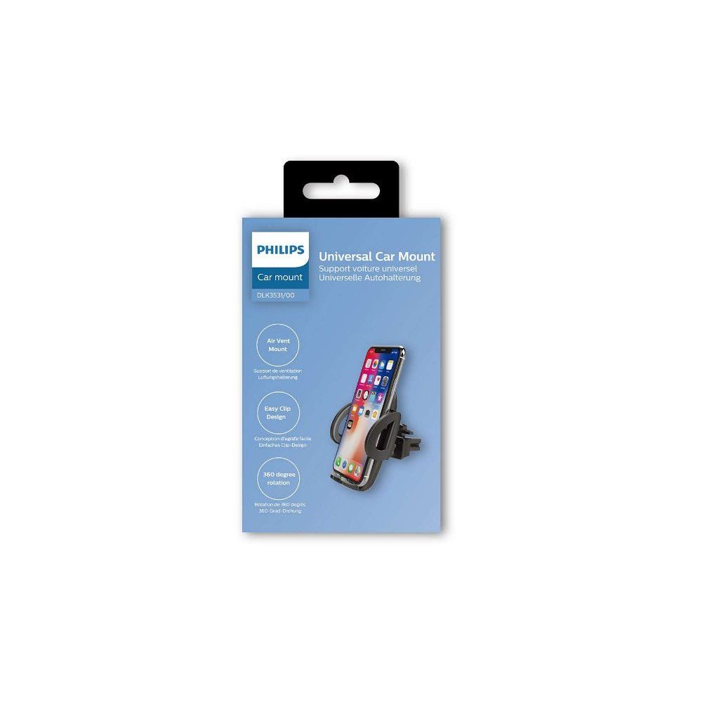 Držák do auta DLK3531/00 je univerzální řešení pro pevné uchycení mobilního telefonu ve vozidle. Slouží k rychlému a bezpečnému umístění telefonu do ventilace vozu, umožňuje snadné ovládání jednou rukou a díky kloubovému ramenu nastavitelné natočení i náklon obrazovky pro pohodlné použití jako navigace.