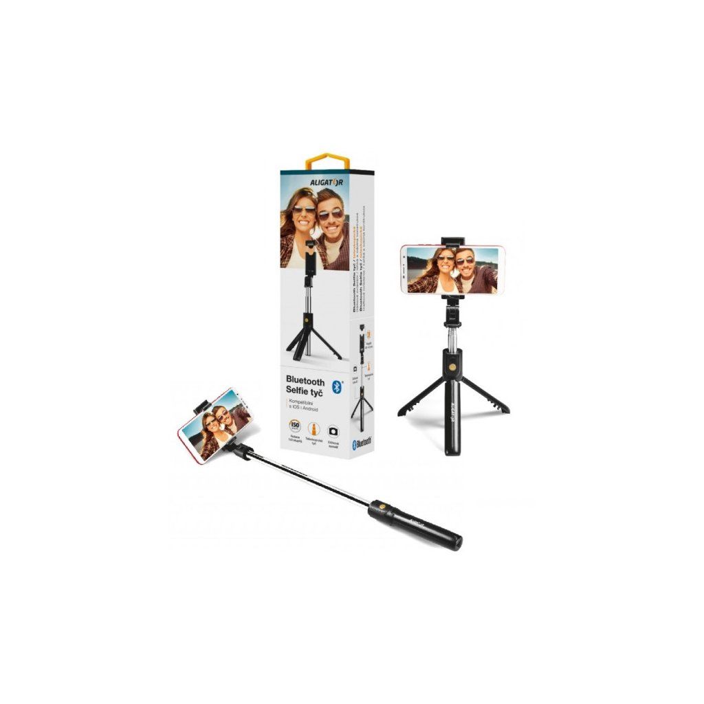 Praktická a spolehlivá selfie tyč ALIGATOR HA12 v černém provedení je ideálním společníkem pro každého, kdo chce snadno a rychle pořizovat kvalitní autoportréty i skupinové snímky bez zbytečných kompromisů. Díky integrovanému Bluetooth ovladači je ovládání fotoaparátu telefonu jednoduché a bez kabelů — stačí spárovat a stisknout tlačítko. Díky teleskopické konstrukci a odnímatelnému tripodu můžete upravit kompozici, délku záběru i úhel podle potřeby: držíte li tyč v ruce, nebo ji postavíte na pevný podklad pro stabilní snímky a časosběrné fotografie.